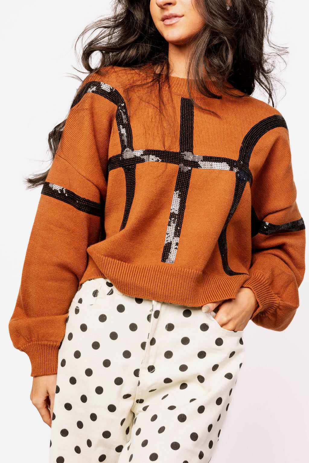 Orange & Black Basketball Sweater | Queen Of Sparkles
