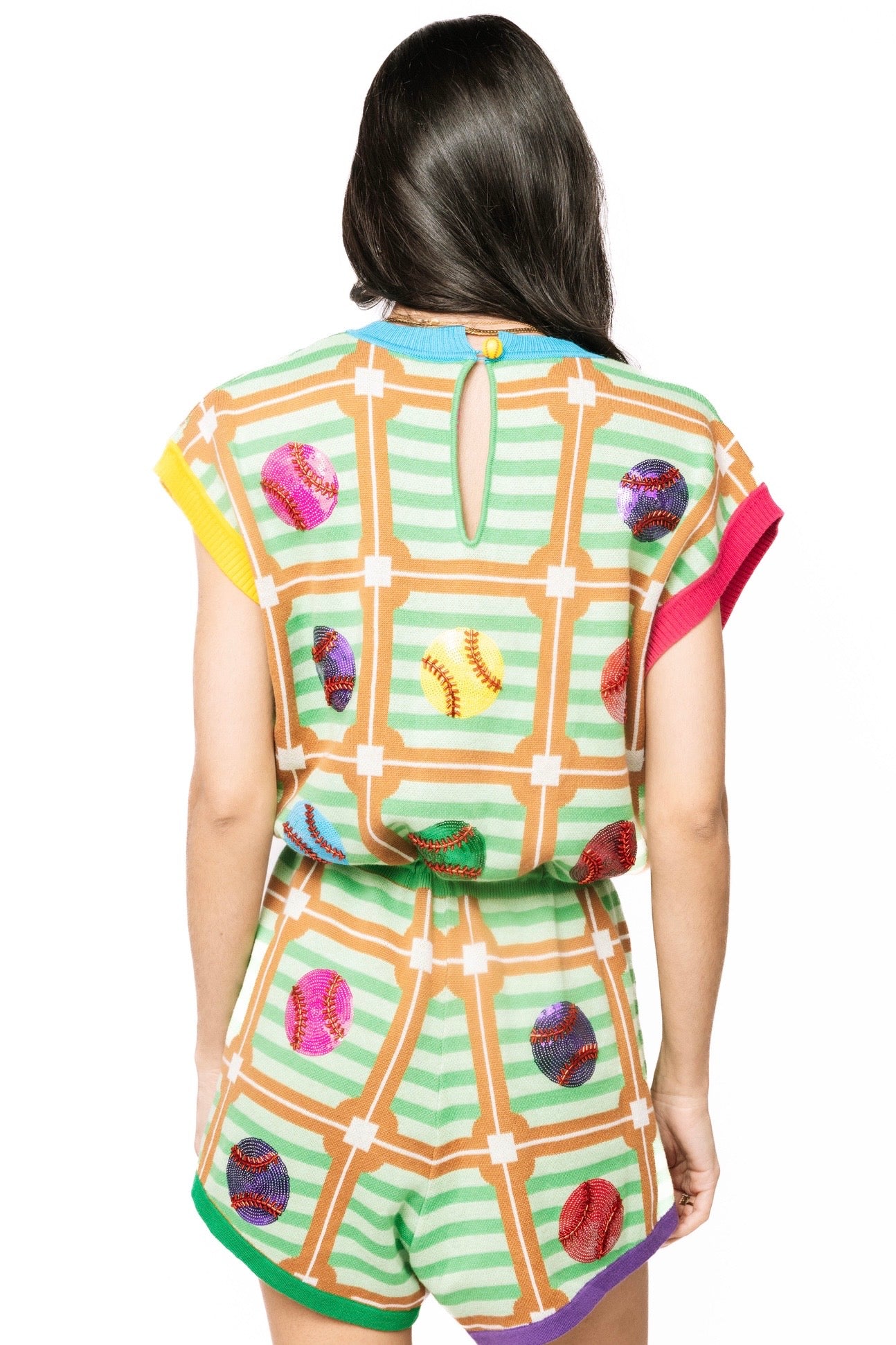 Mint Baseball Field Diamond Multi Baseball Midi Tie Romper | Queen Of Sparkles