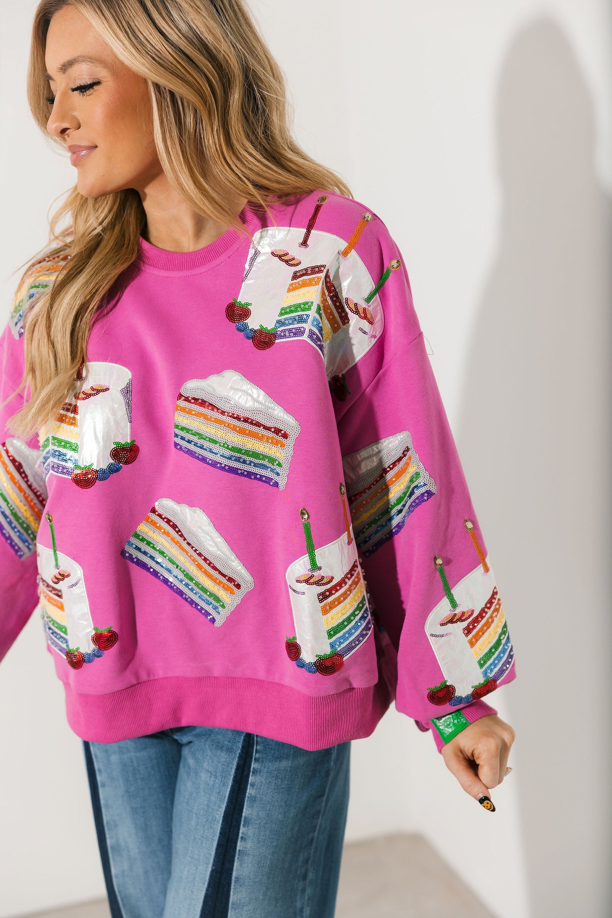 Hot Pink Rainbow Birthday Cake Sweatshirt | Queen Of Sparkles