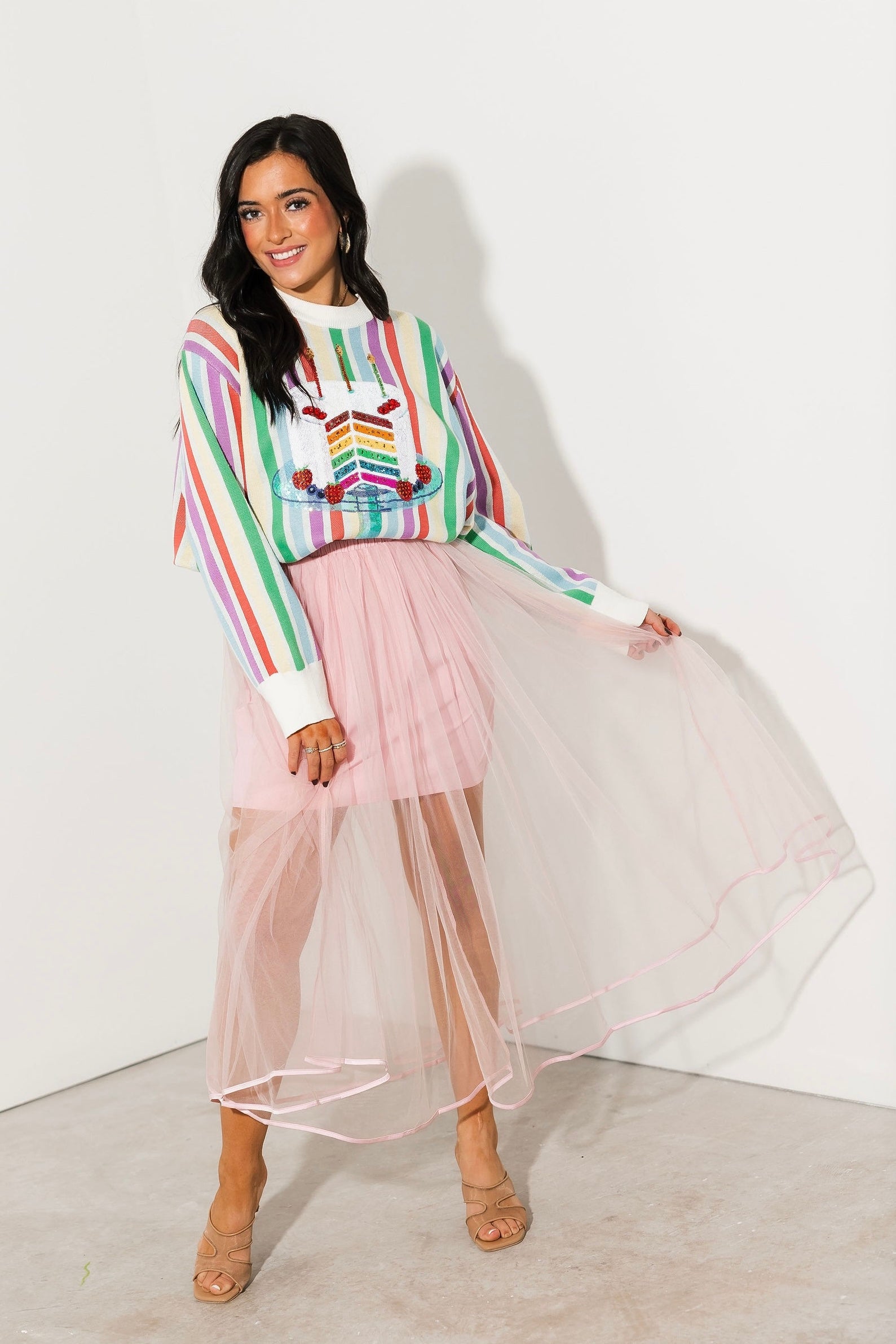 Rainbow Stripe Birthday Cake Sweater | Queen Of Sparkles
