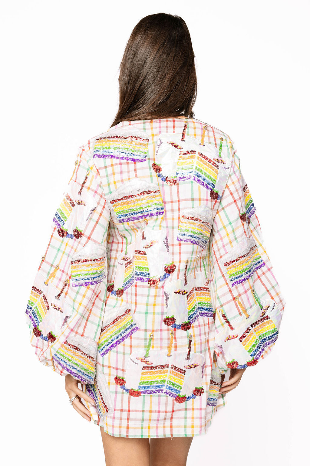 Rainbow Plaid Birthday Cake Button Up Cotton Dress | Queen Of Sparkles