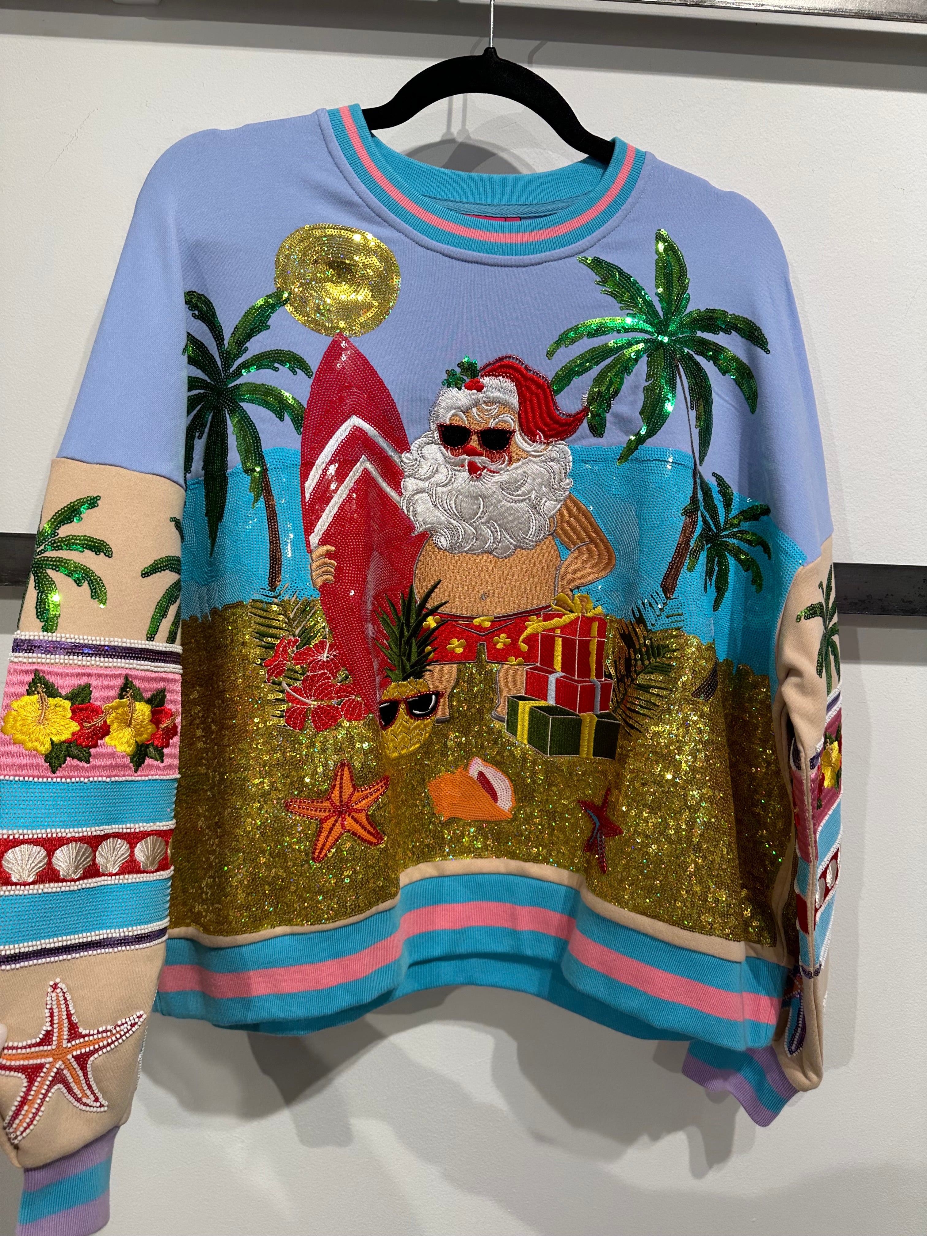 Multi Vintage Vacation Santa Sweatshirt | Queen Of Sparkles