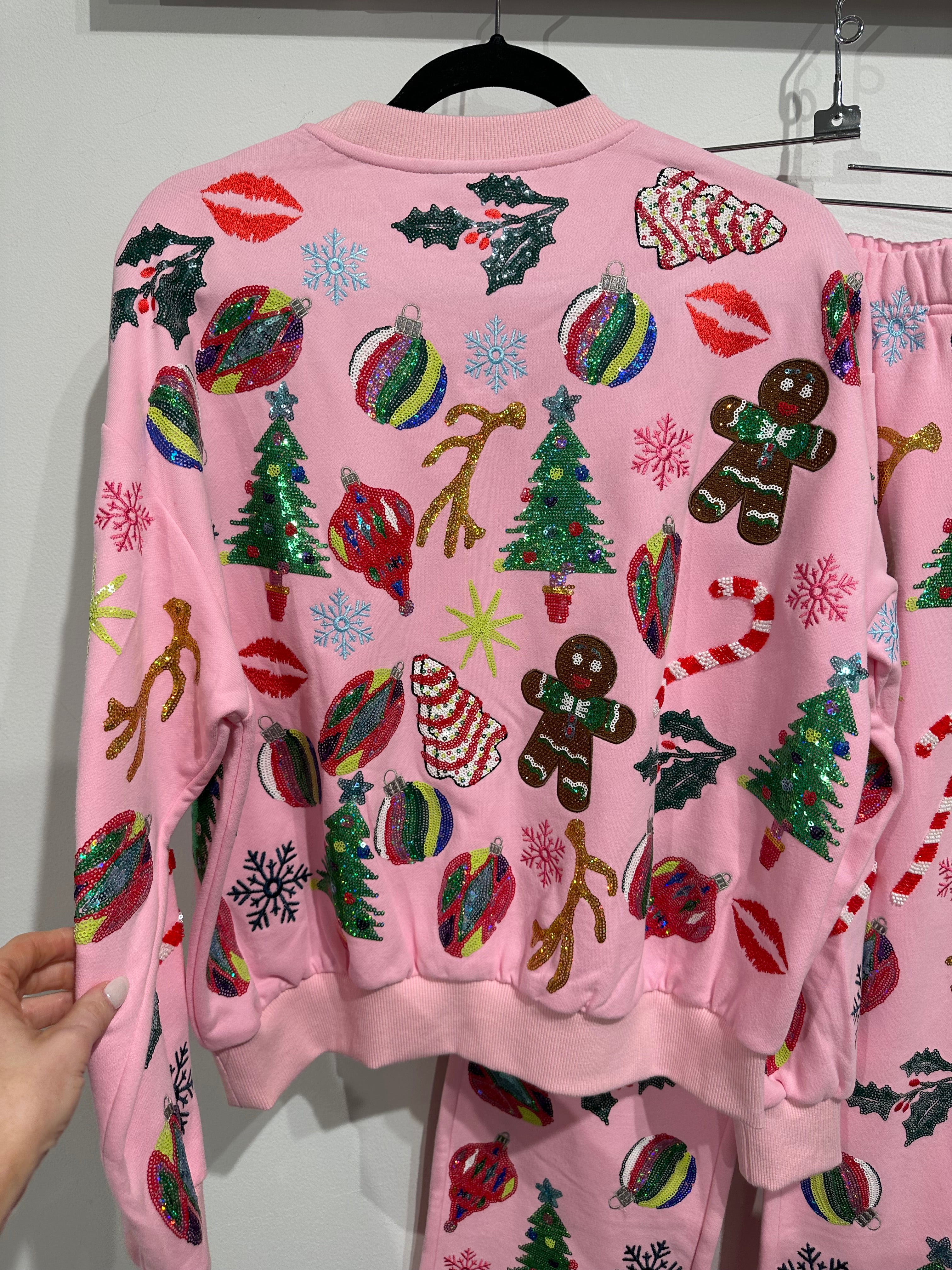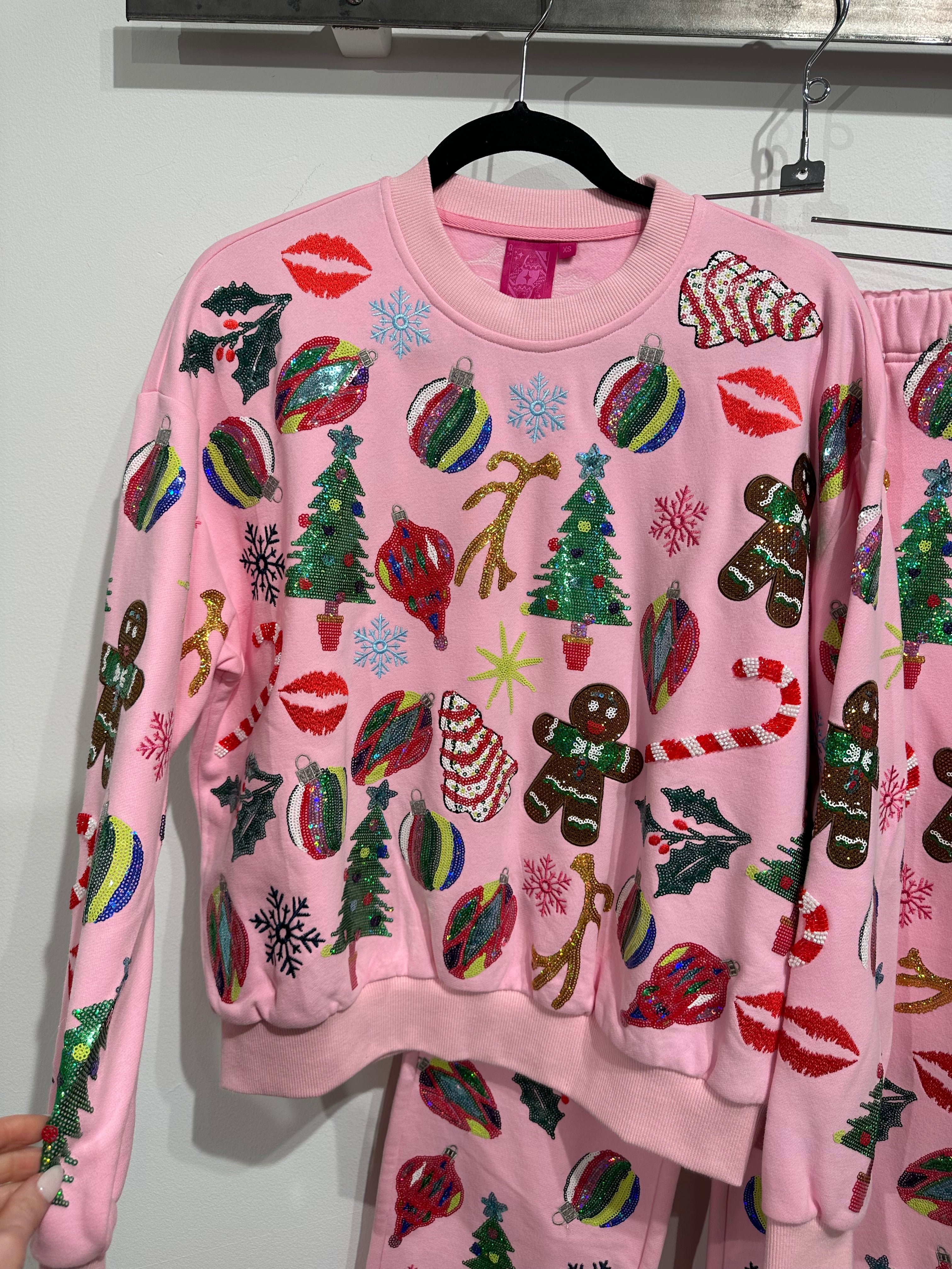 Light Pink Christmas Icons Sweatshirt | Queen Of Sparkles