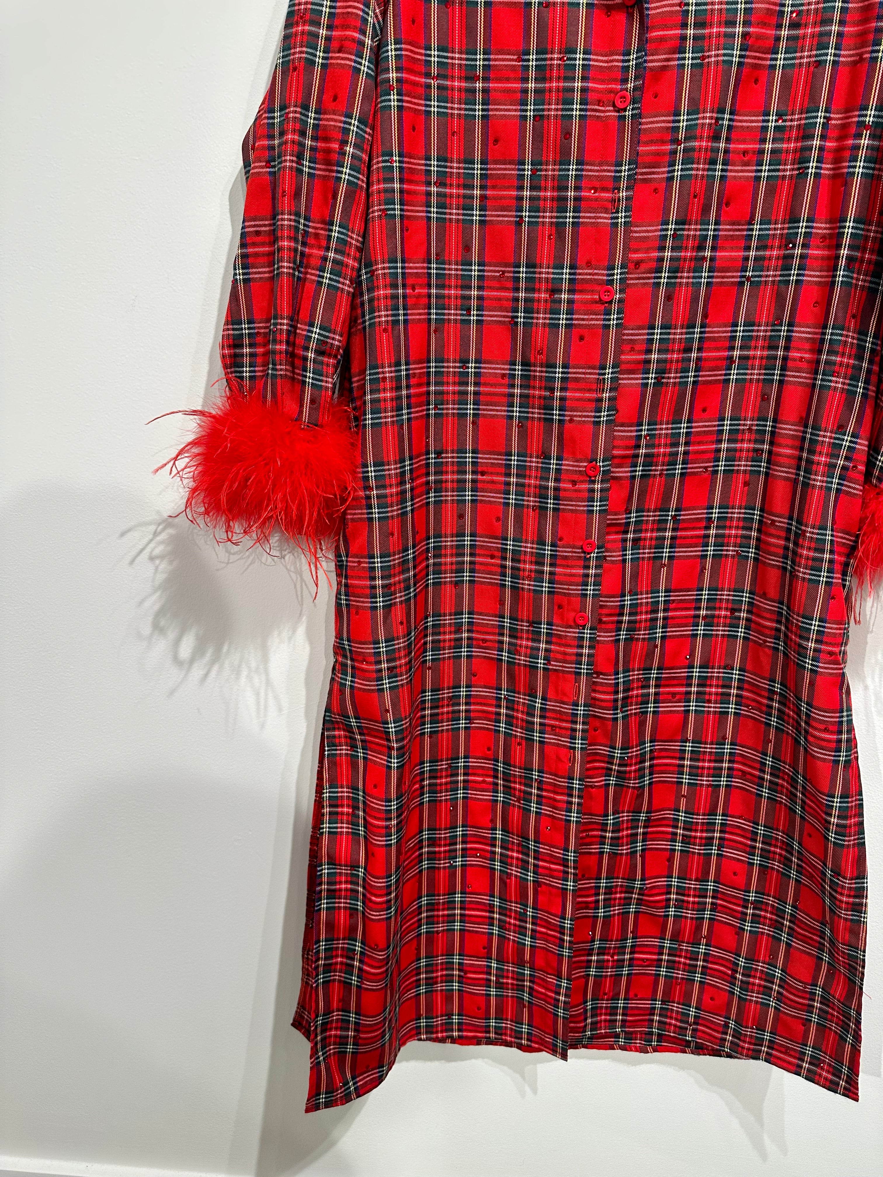 Red & Green Plaid Feather Sleeve Button Up Midi Dress | Queen Of Sparkles