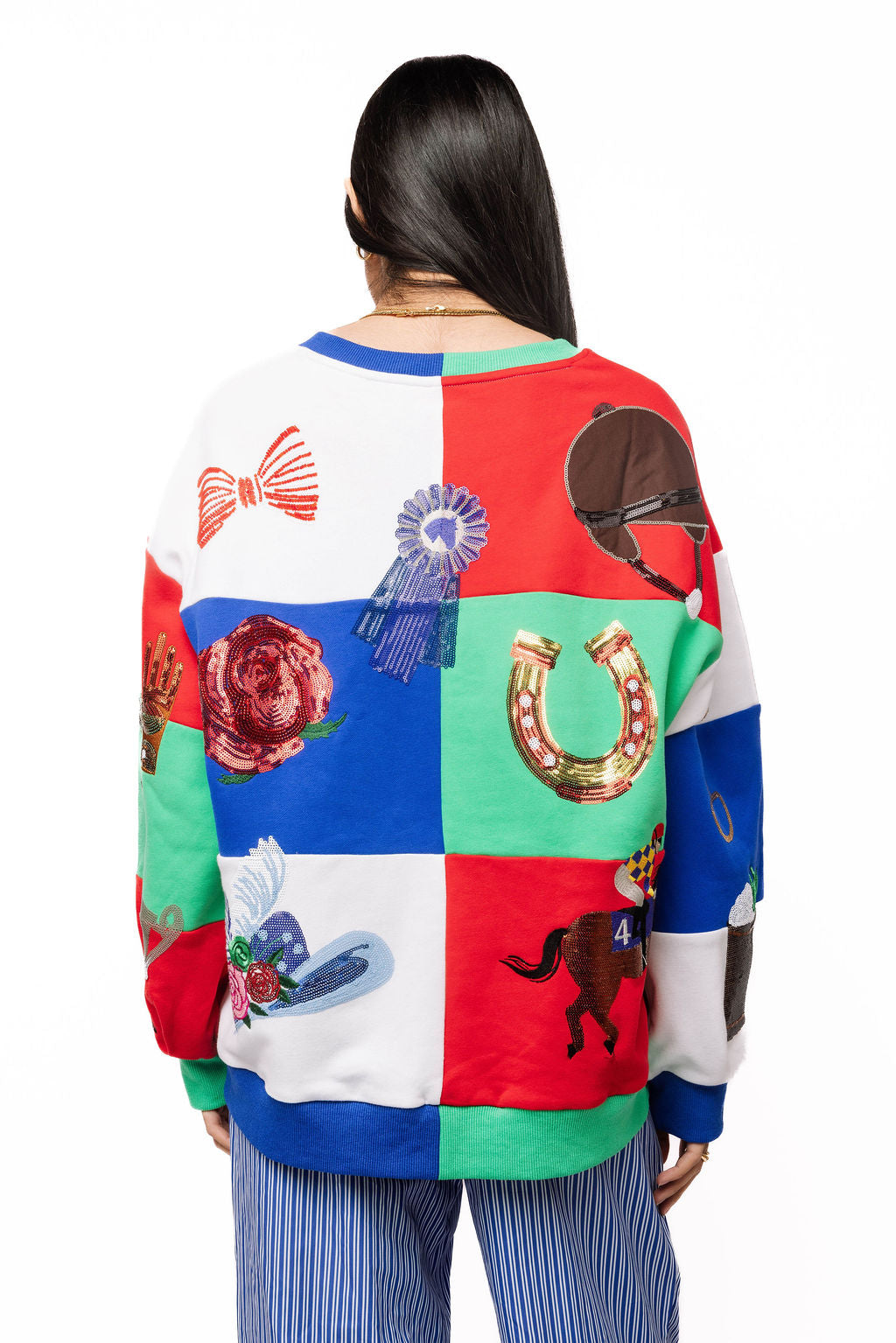 Multi Checkered Kentucky Derby Icon Sweatshirt | Queen Of Sparkles