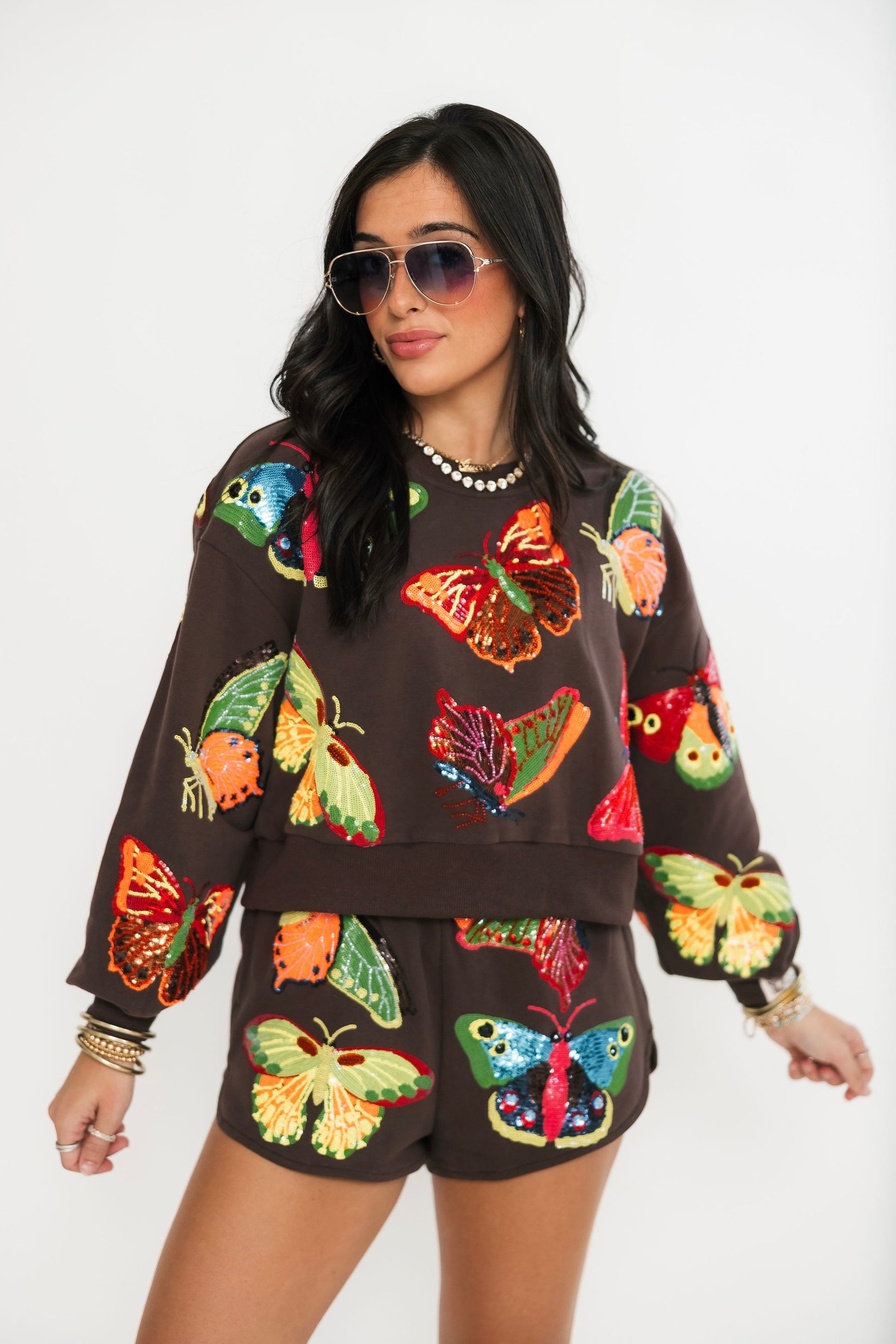 Brown & Neon Butterfly Sweatshirt | Queen Of Sparkles
