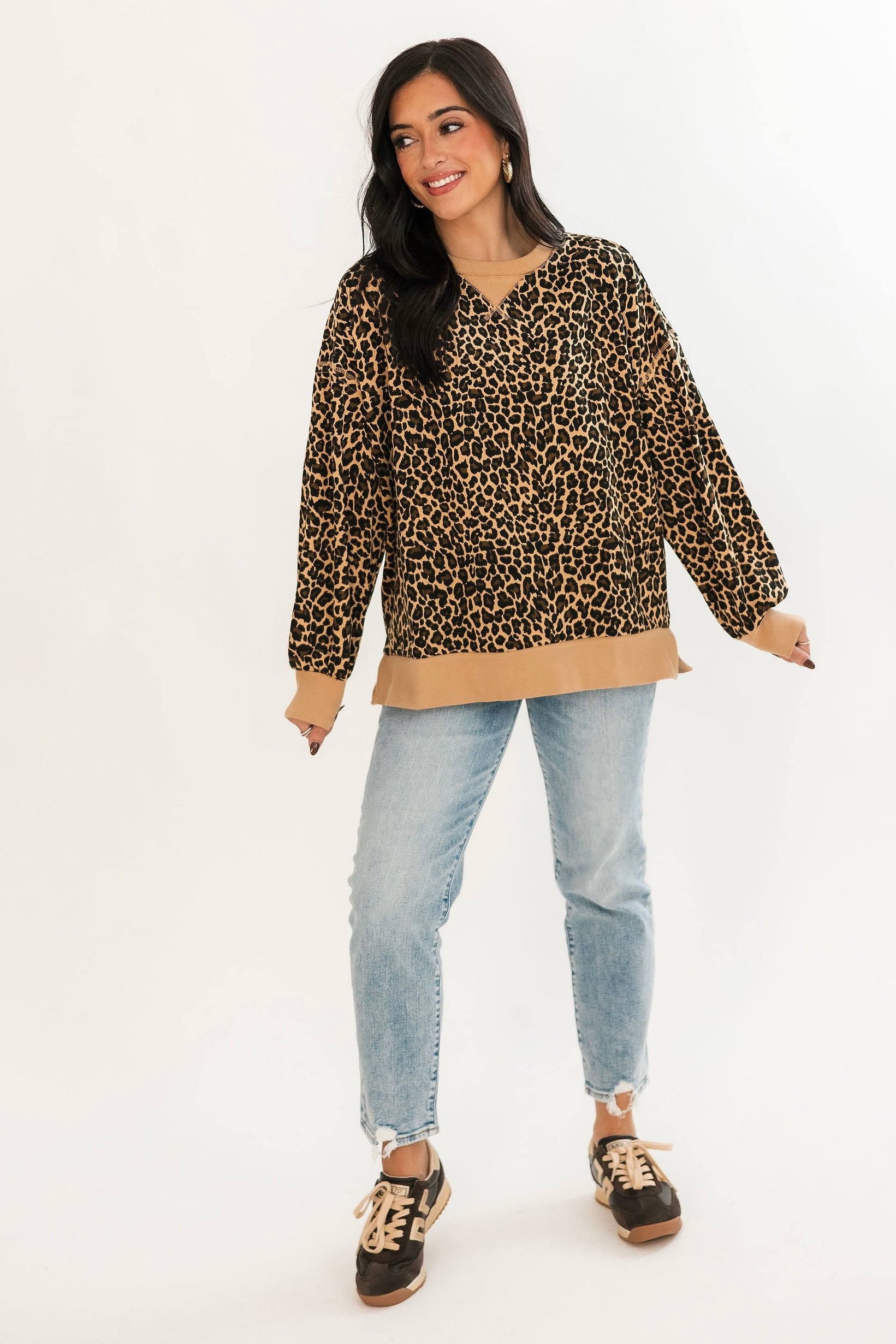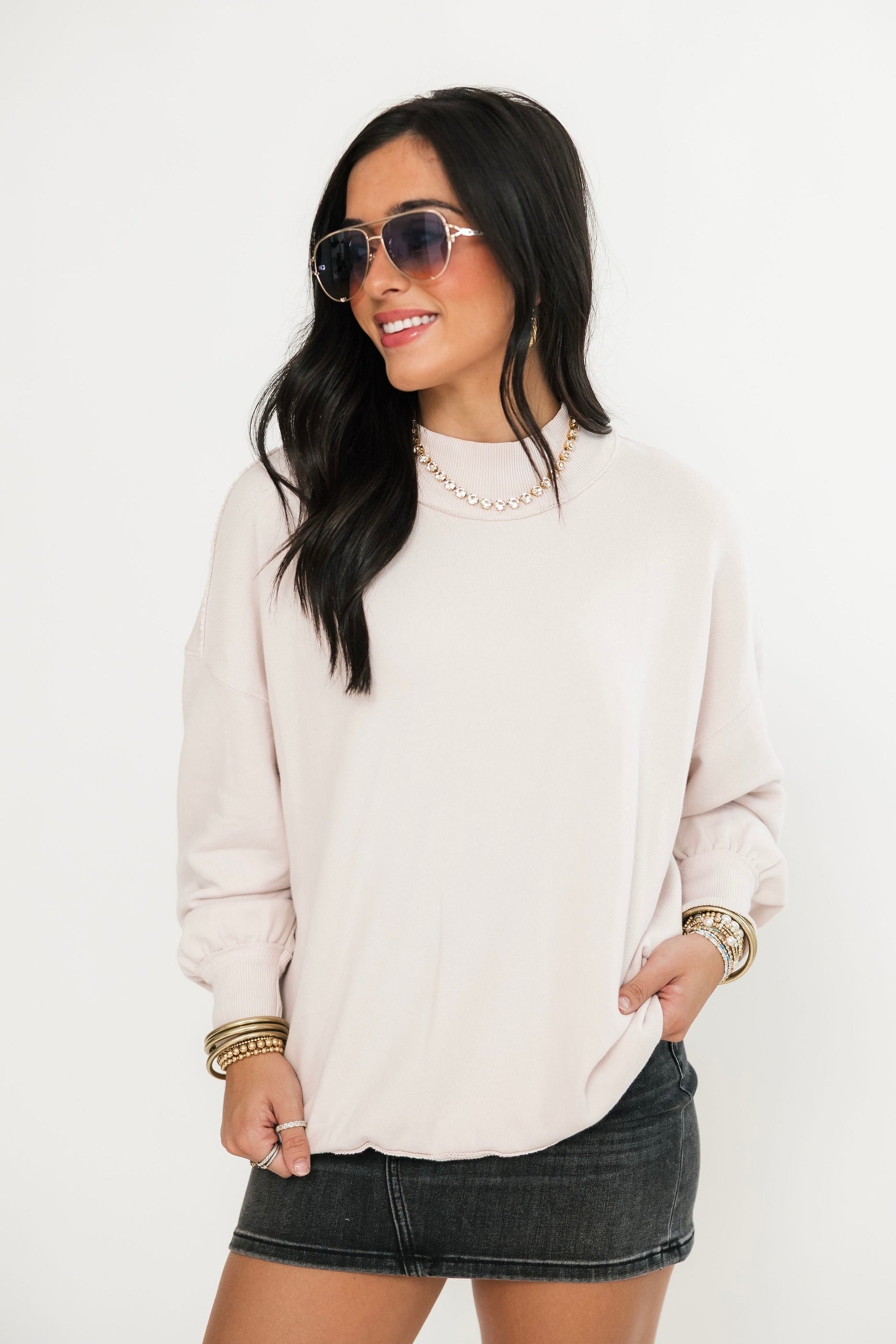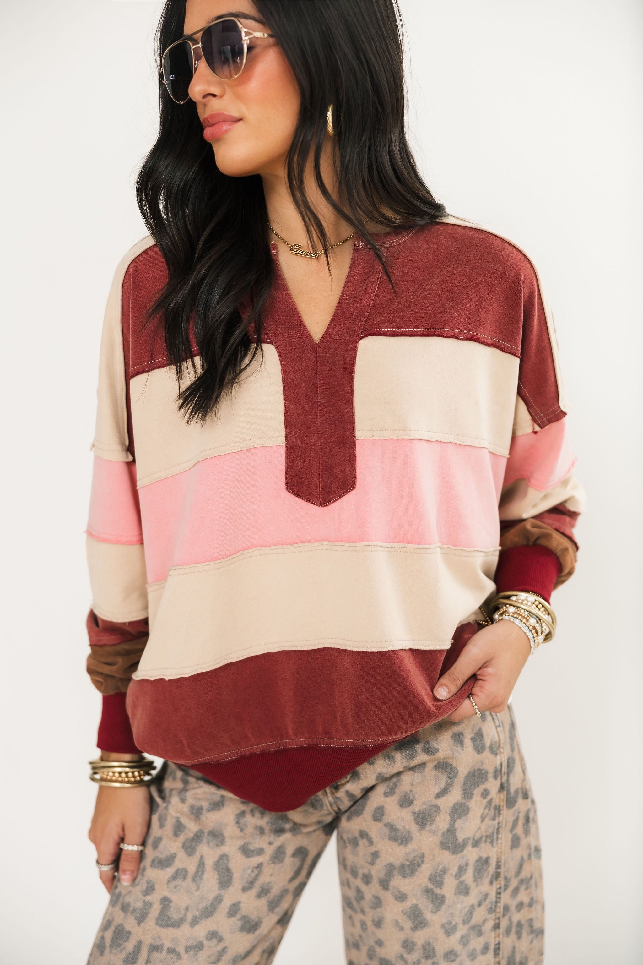 Everyday Stripe Crew Sweatshirt | Beige Brick