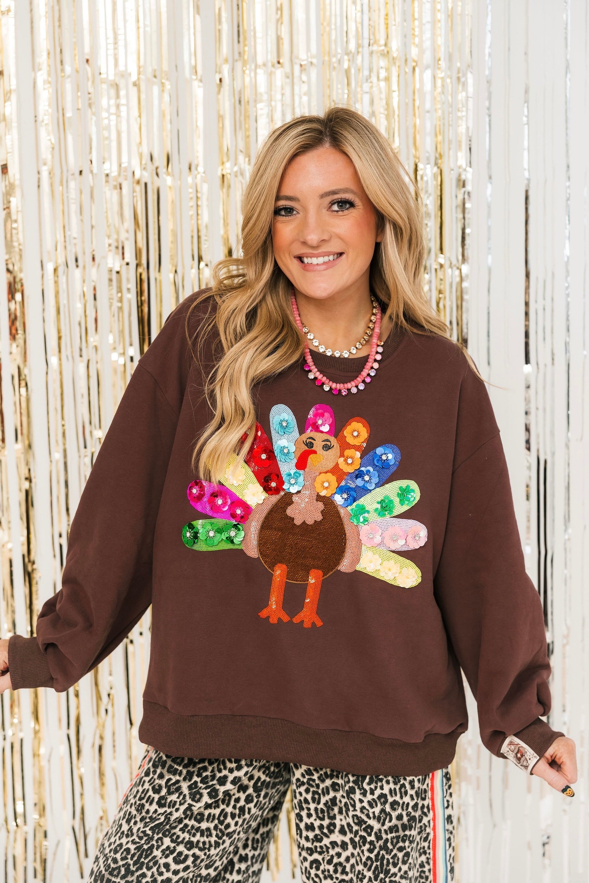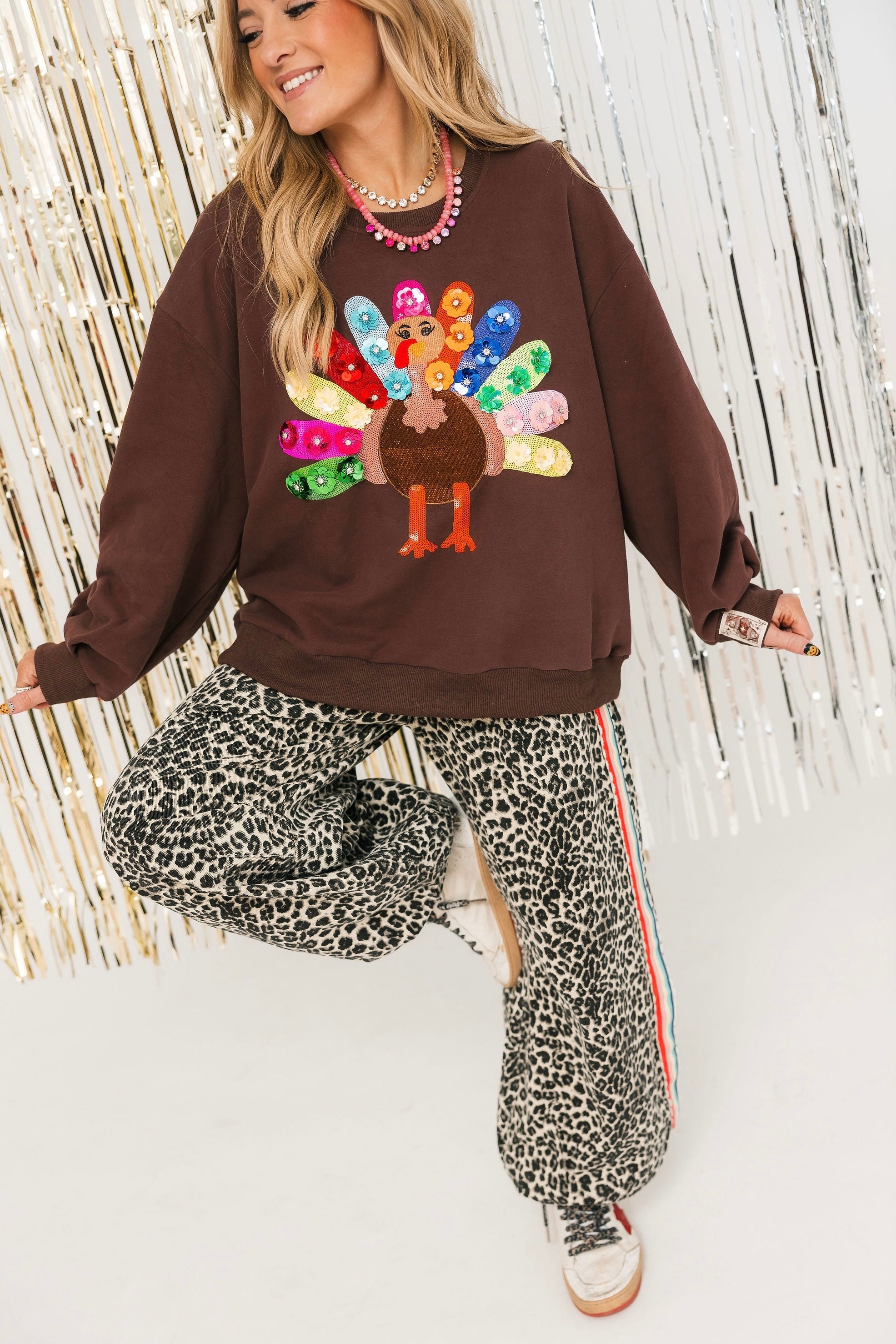Brown Big Turkey & Leaves Sweatshirt | Queen Of Sparkles
