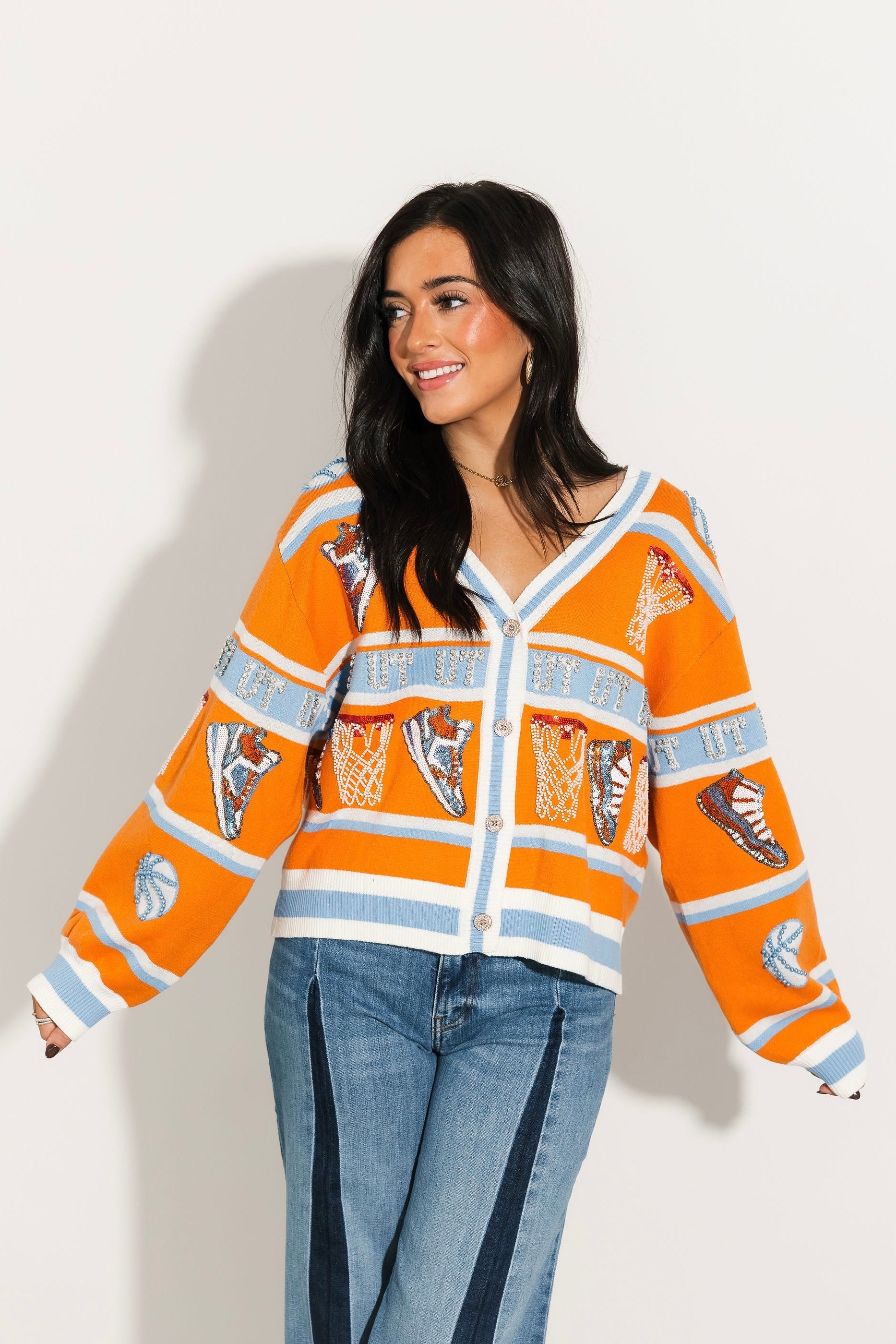 Licensed Tenn Striped Basketball Rhinestone Icon Cardigan | Queen Of Sparkles