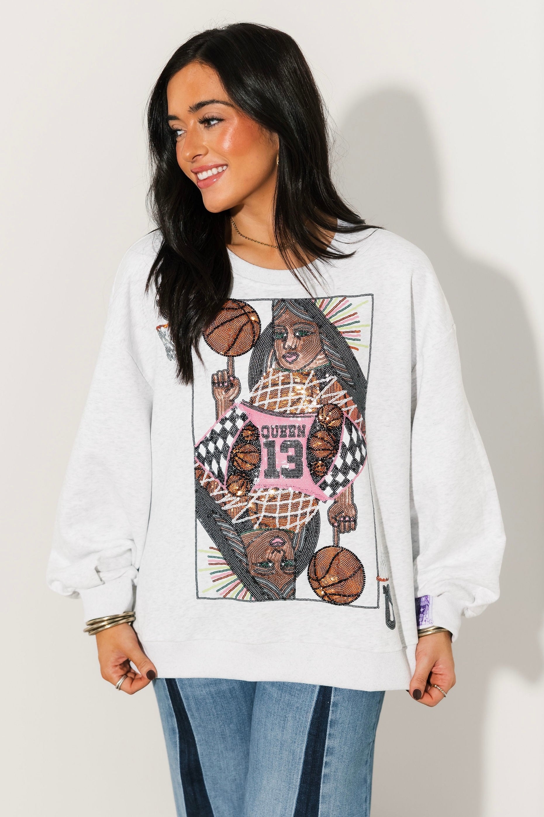 Grey & Pink Fair Skin Basketball Queen Card Sweatshirt | Queen Of Sparkles