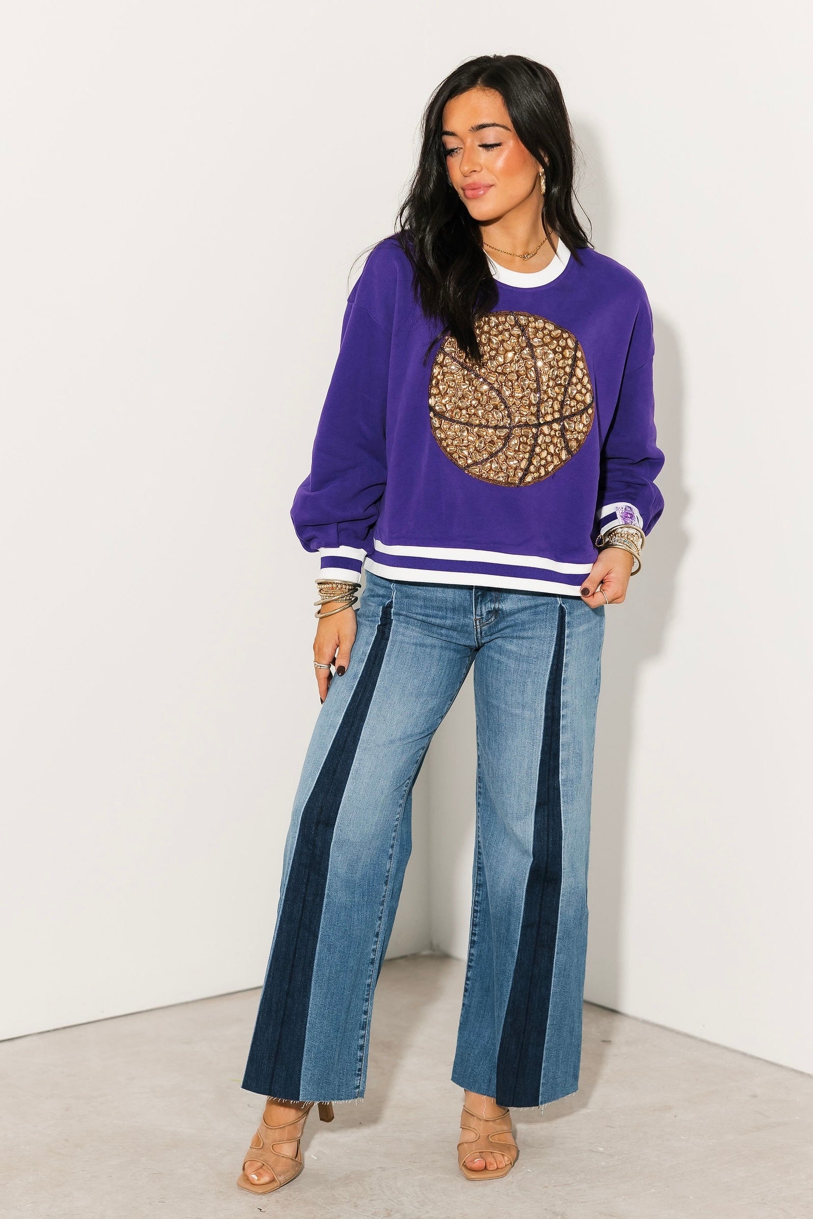 Purple Jeweled Basketball Sweatshirt | Queen Of Sparkles