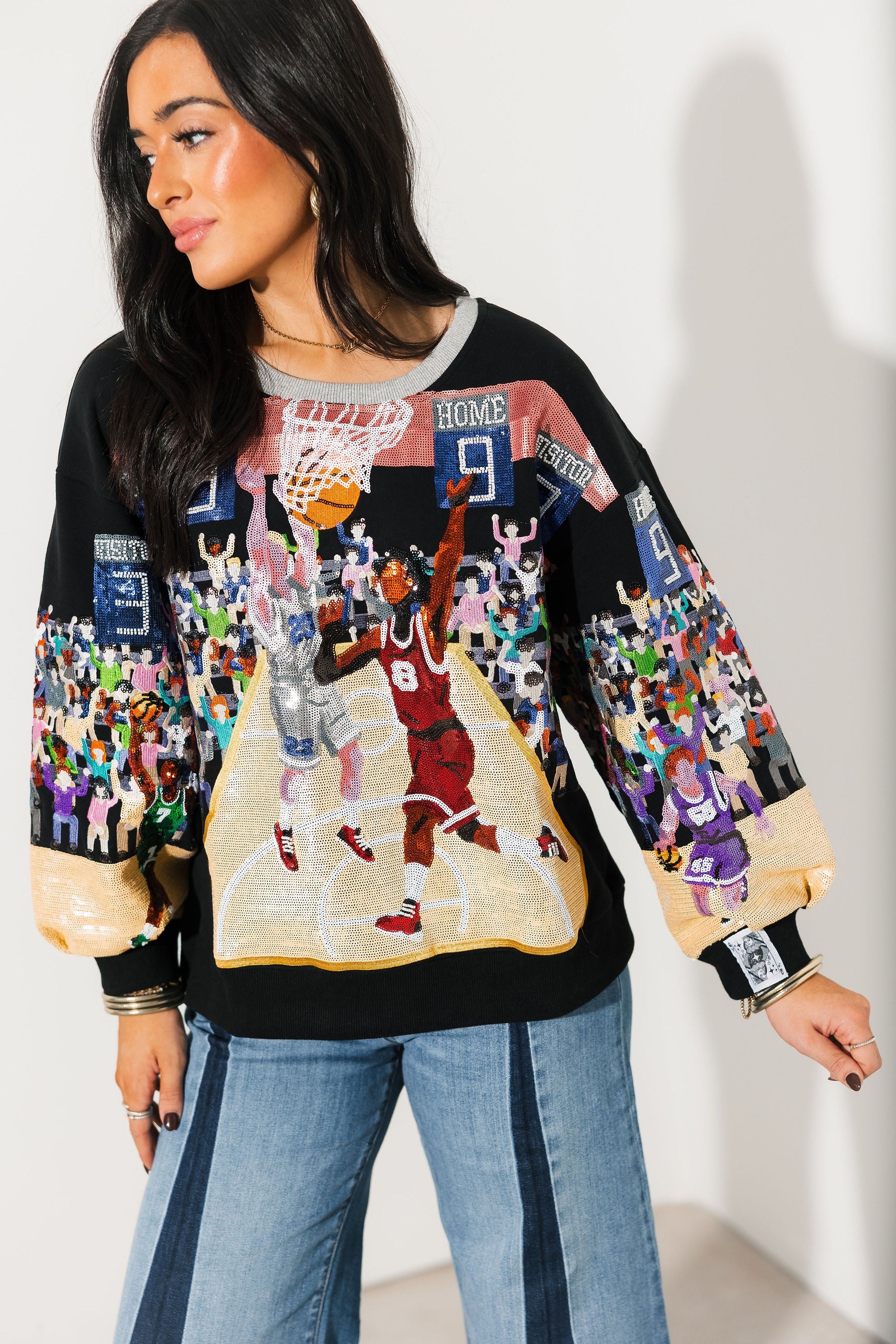Black Basketball Court Scene Sweatshirt | Queen Of Sparkles