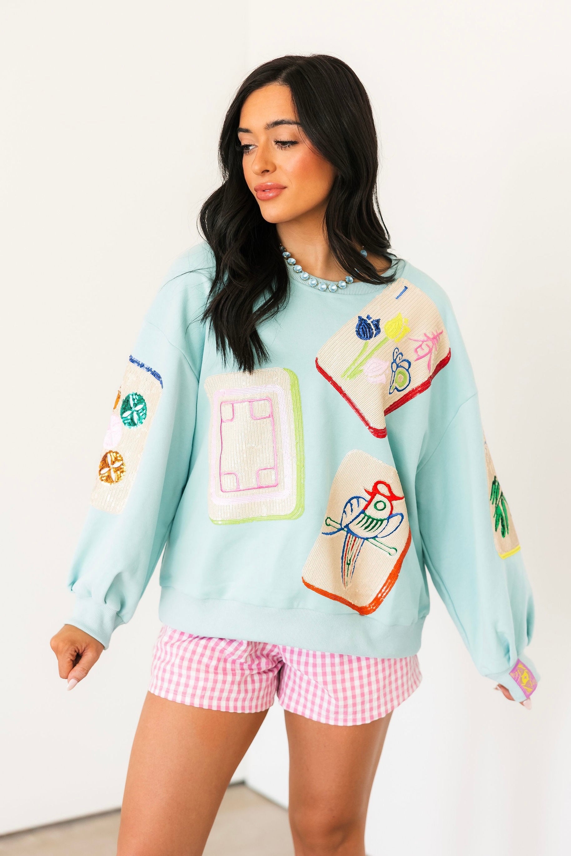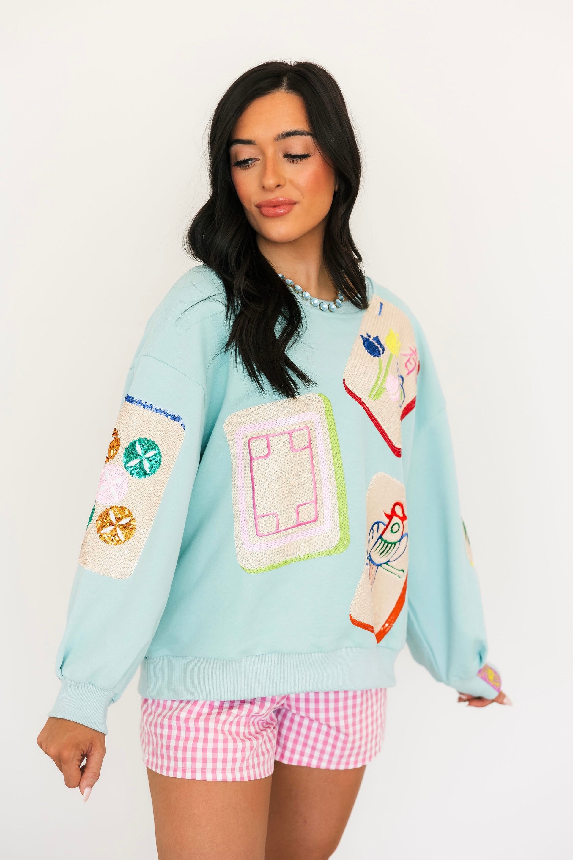 Aqua Scattered Mahjong Tile Sweatshirt | Queen Of Sparkles