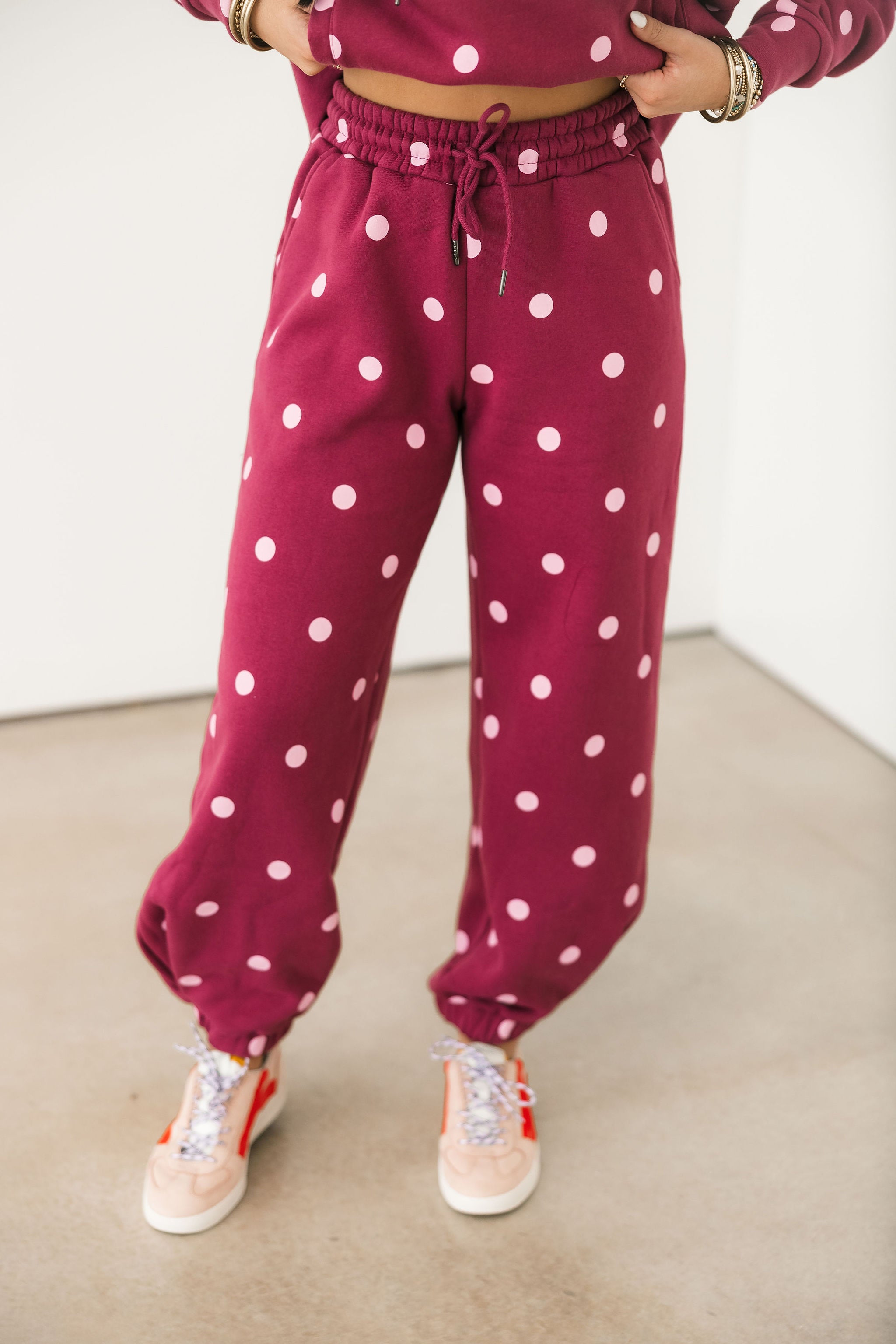 Polka Dot Joggers | Maroon & Pink