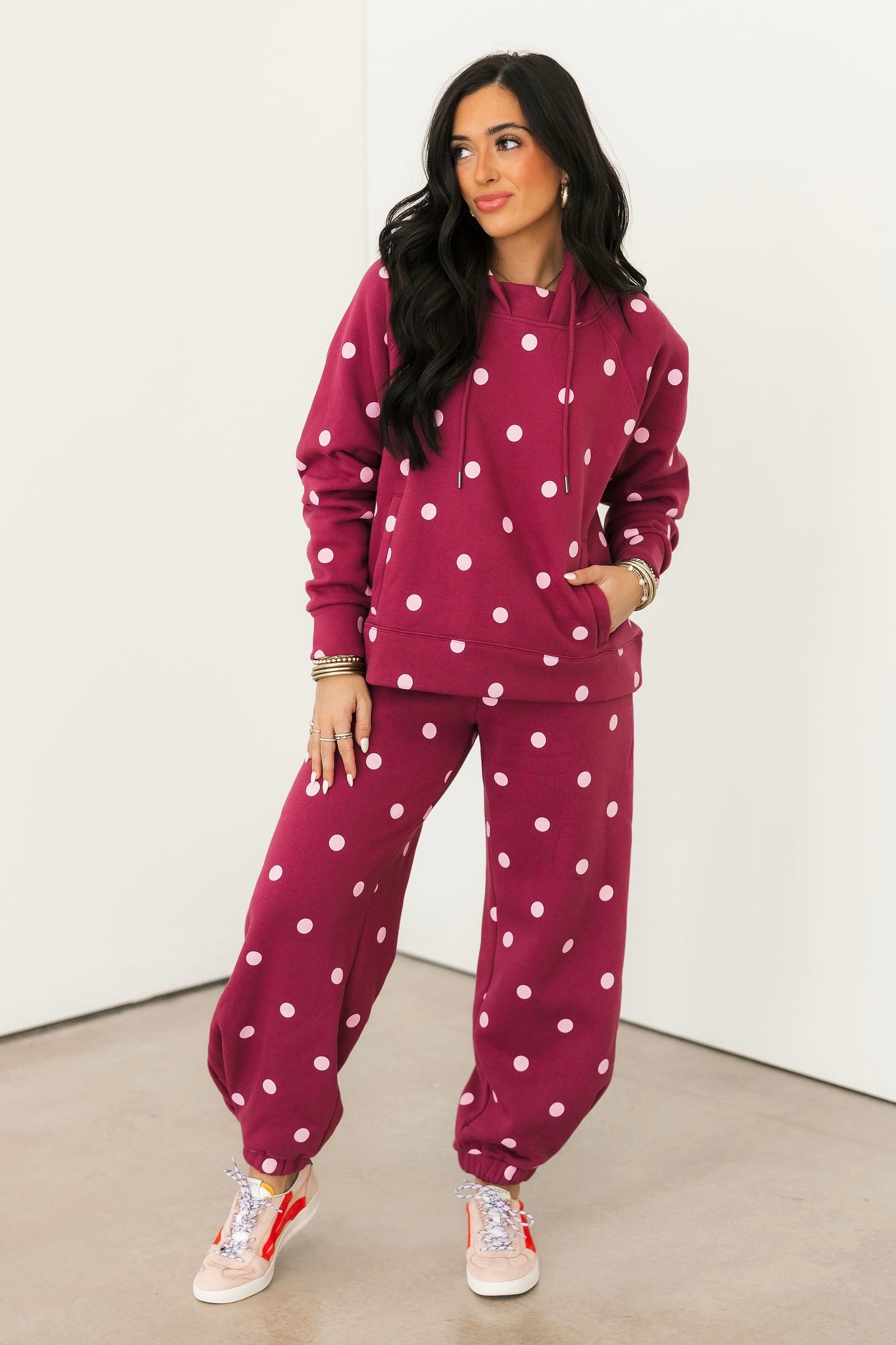 Polka Dot Hoodie | Maroon & Pink