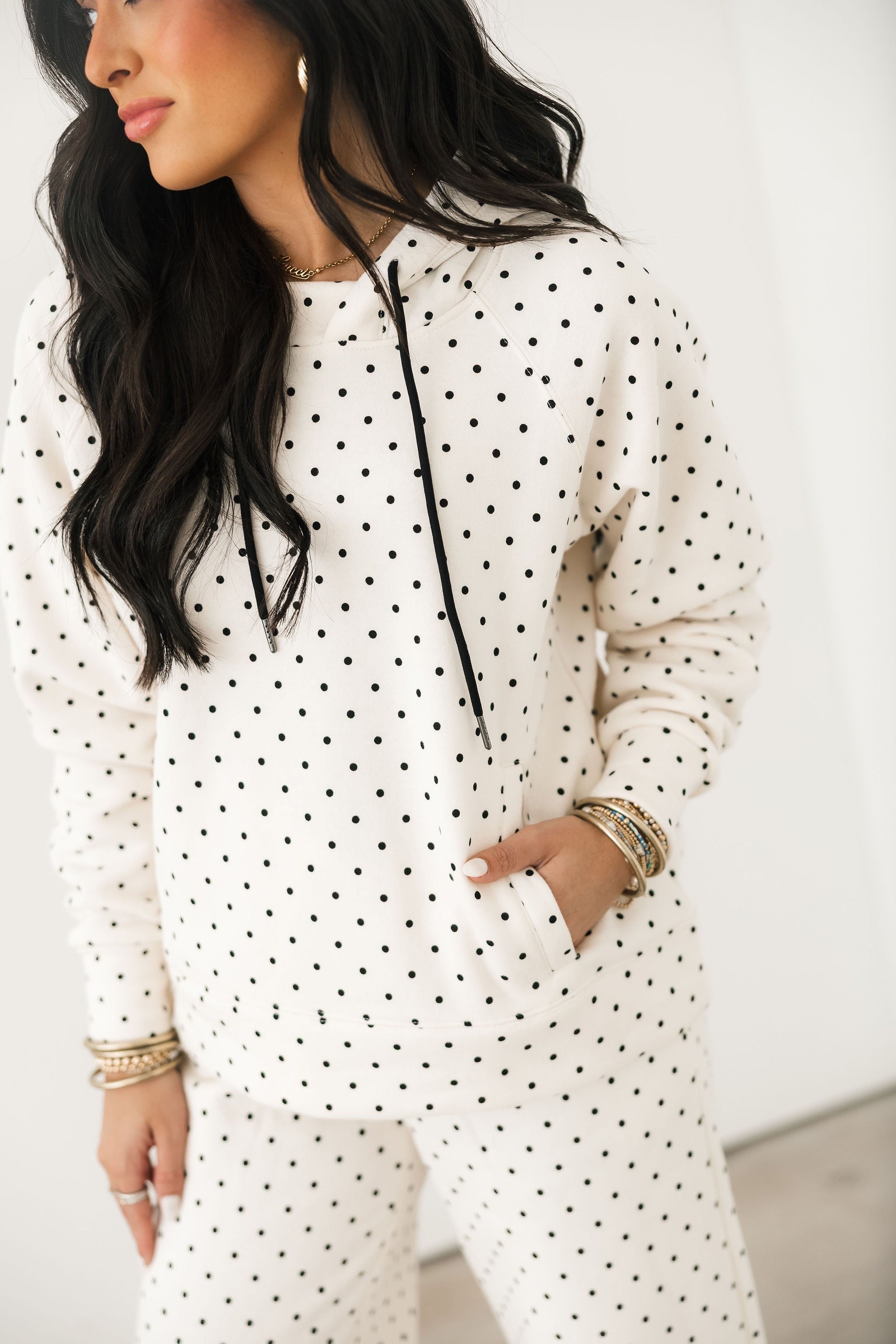 Polka Dot Hoodie | Ivory & Black