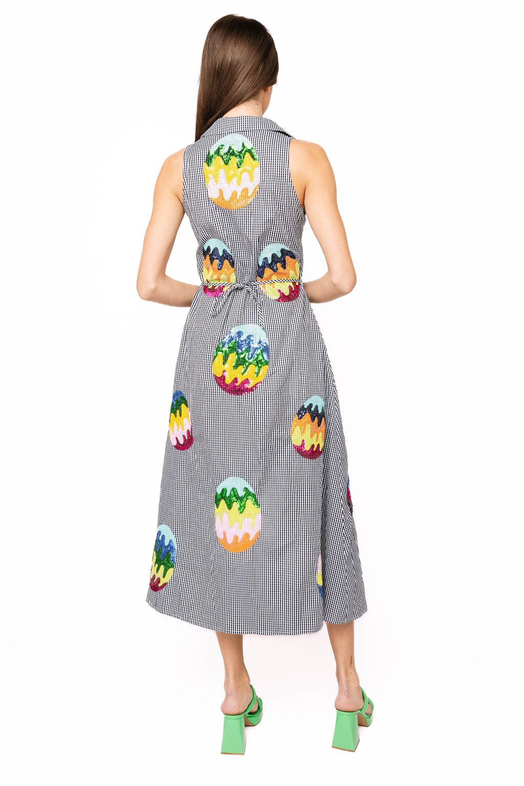 Black & White Gingham Groovy Easter Egg Button Up Cotton Midi Dress | Queen Of Sparkles