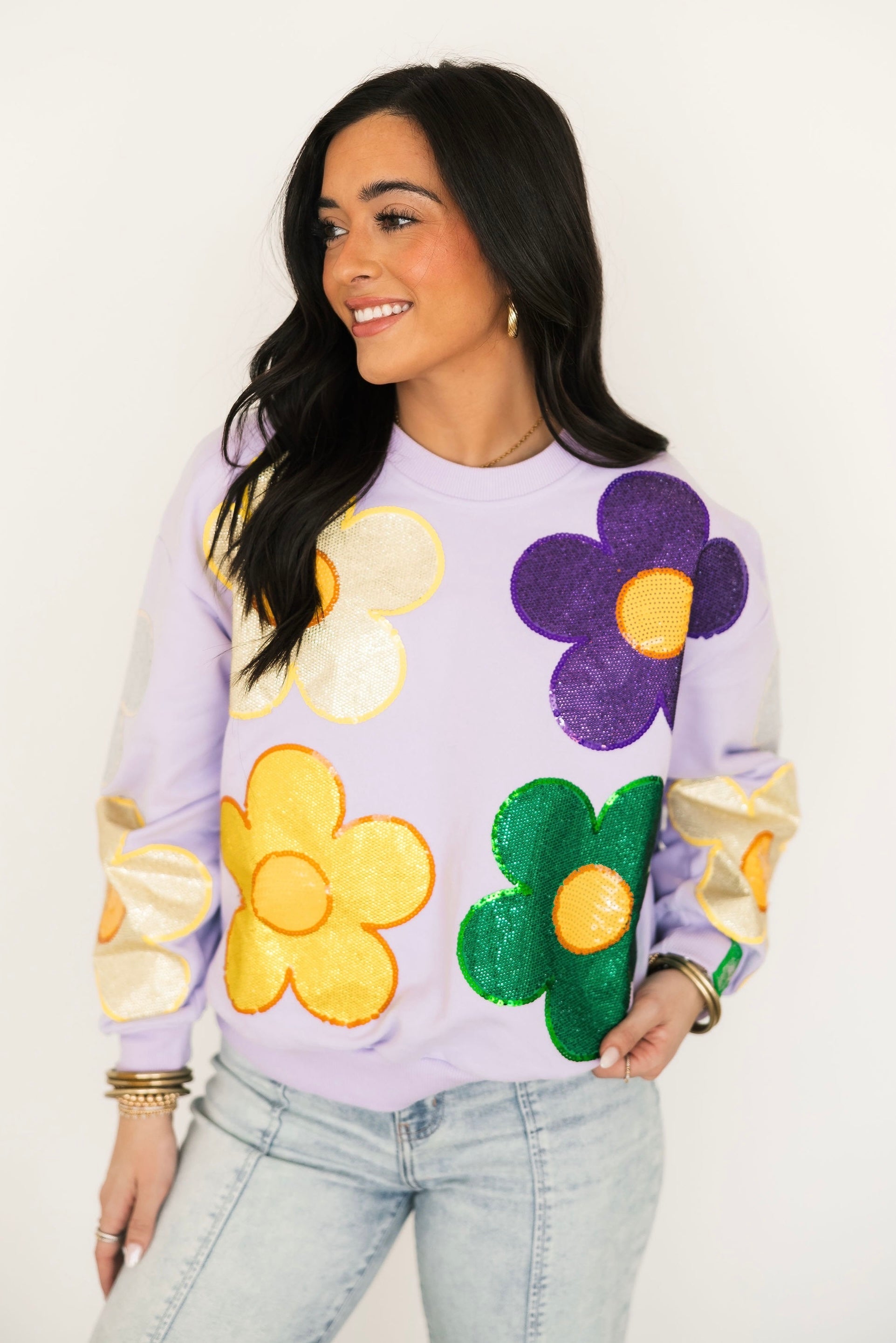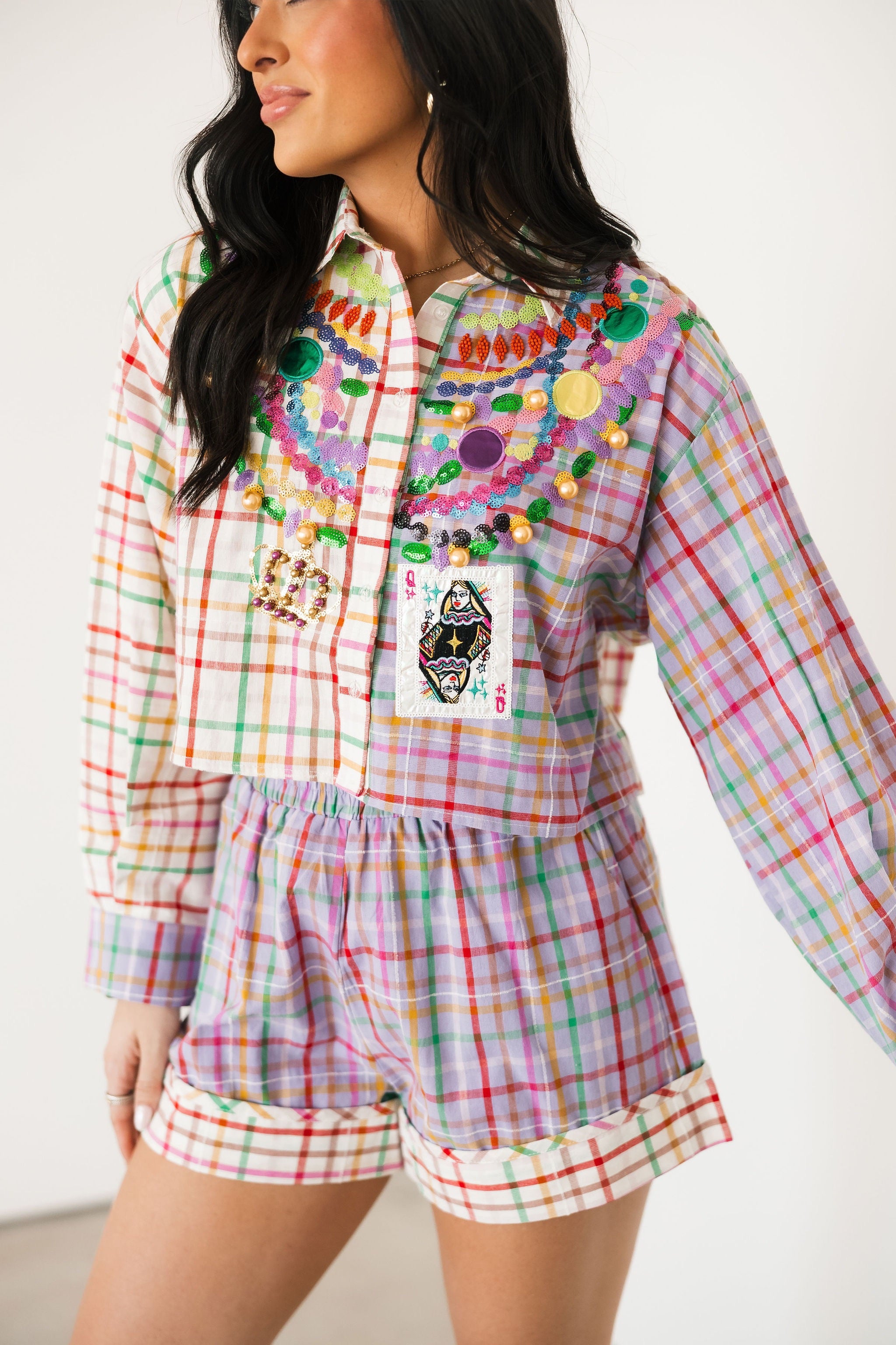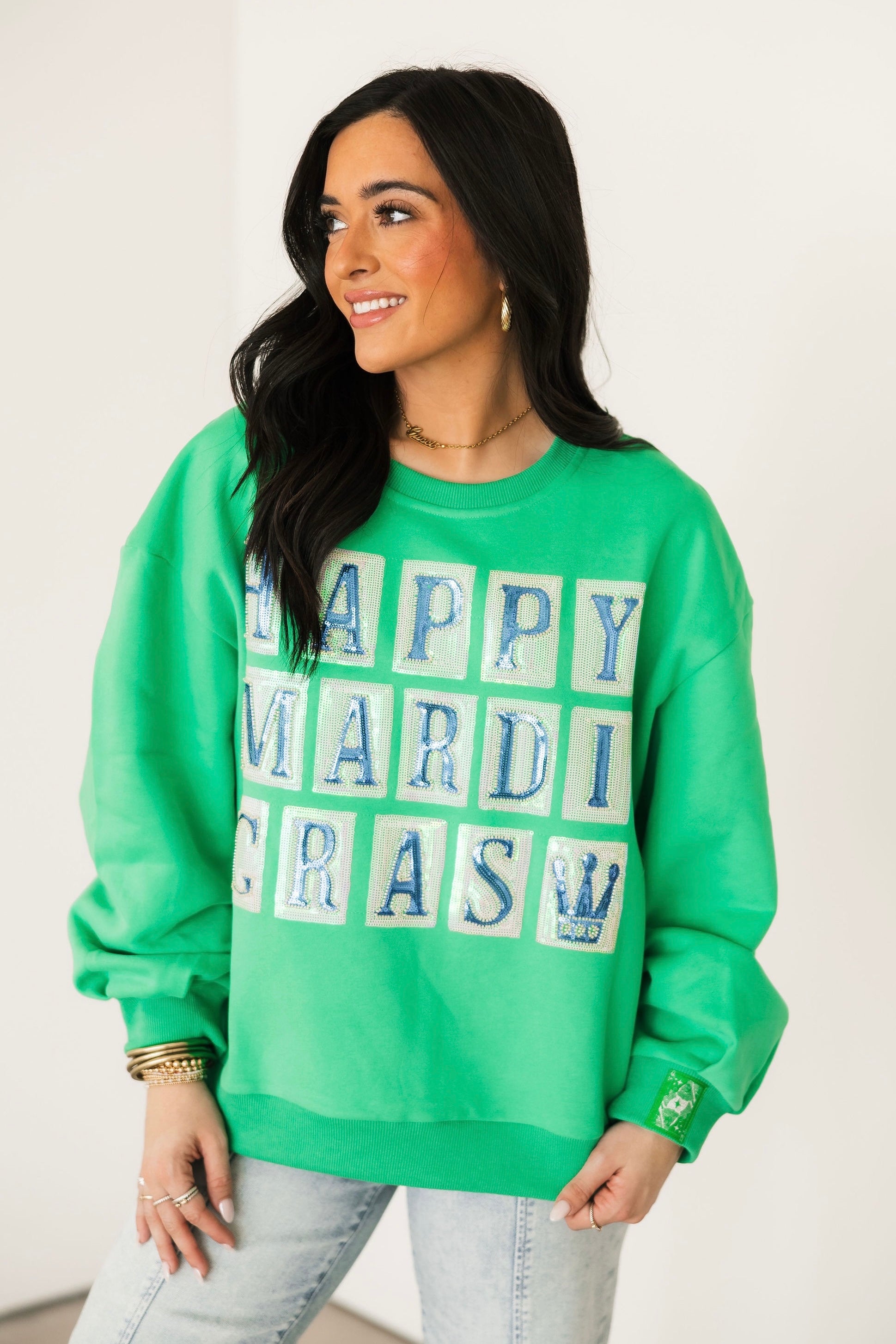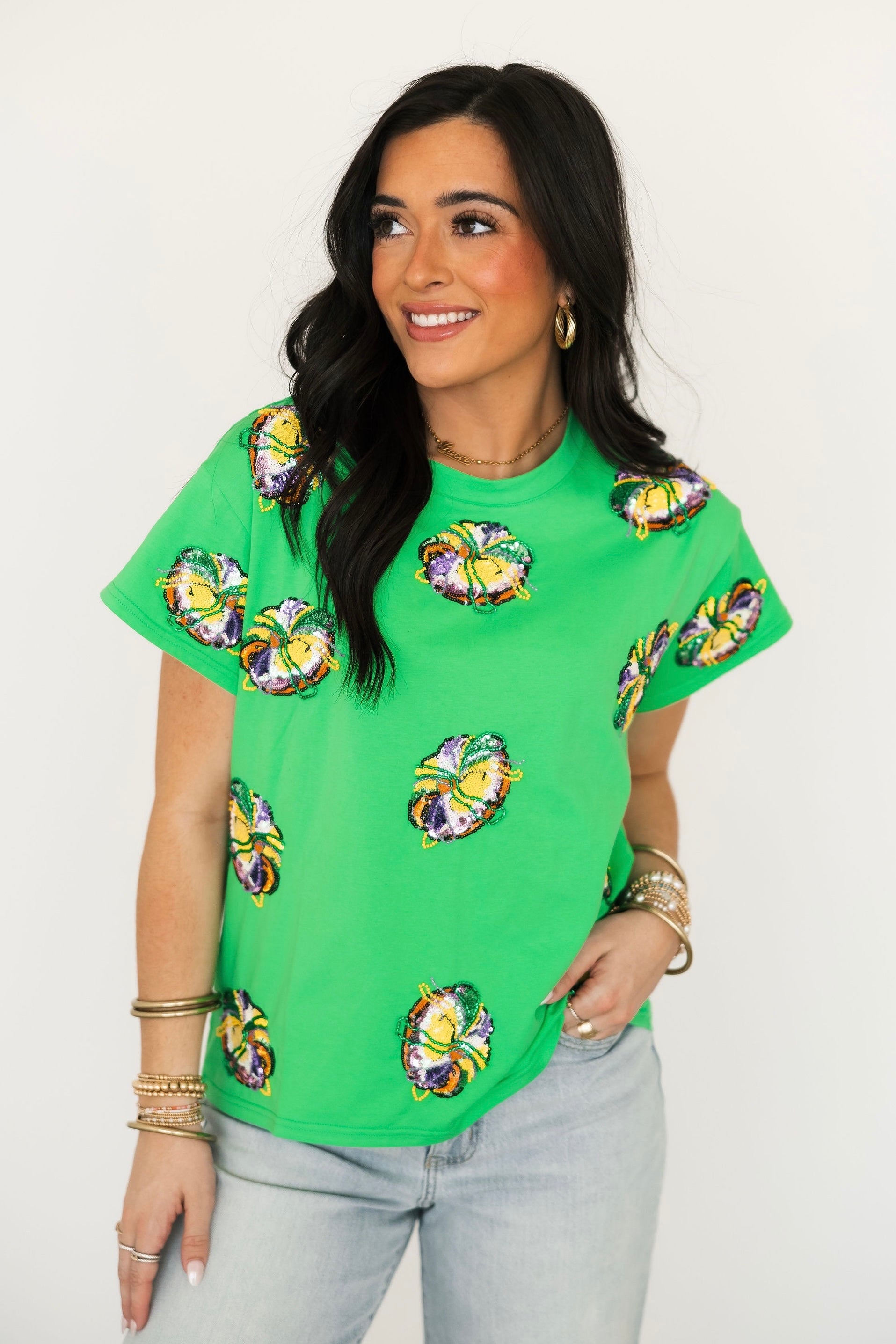 Celebrate carnival season in unforgettable style with our Queen of Sparkles Mardi Gras Collection. Designed to shine from parade routes to party nights, this collection features bold sequin Mardi Gras apparel in vibrant purple, green, and gold, complete with playful Mardi Gras-inspired designs and Queen of Sparklesβ signature hand-sewn sparkle.