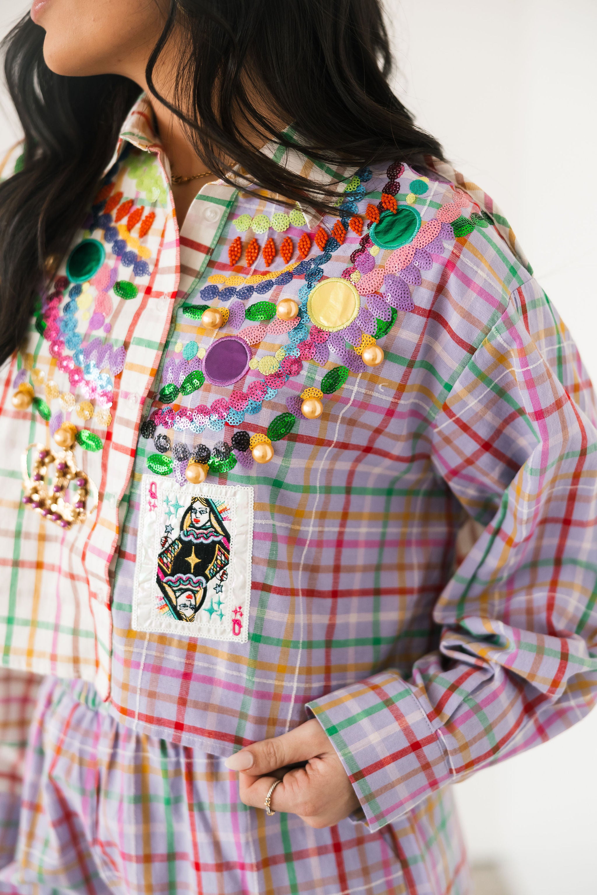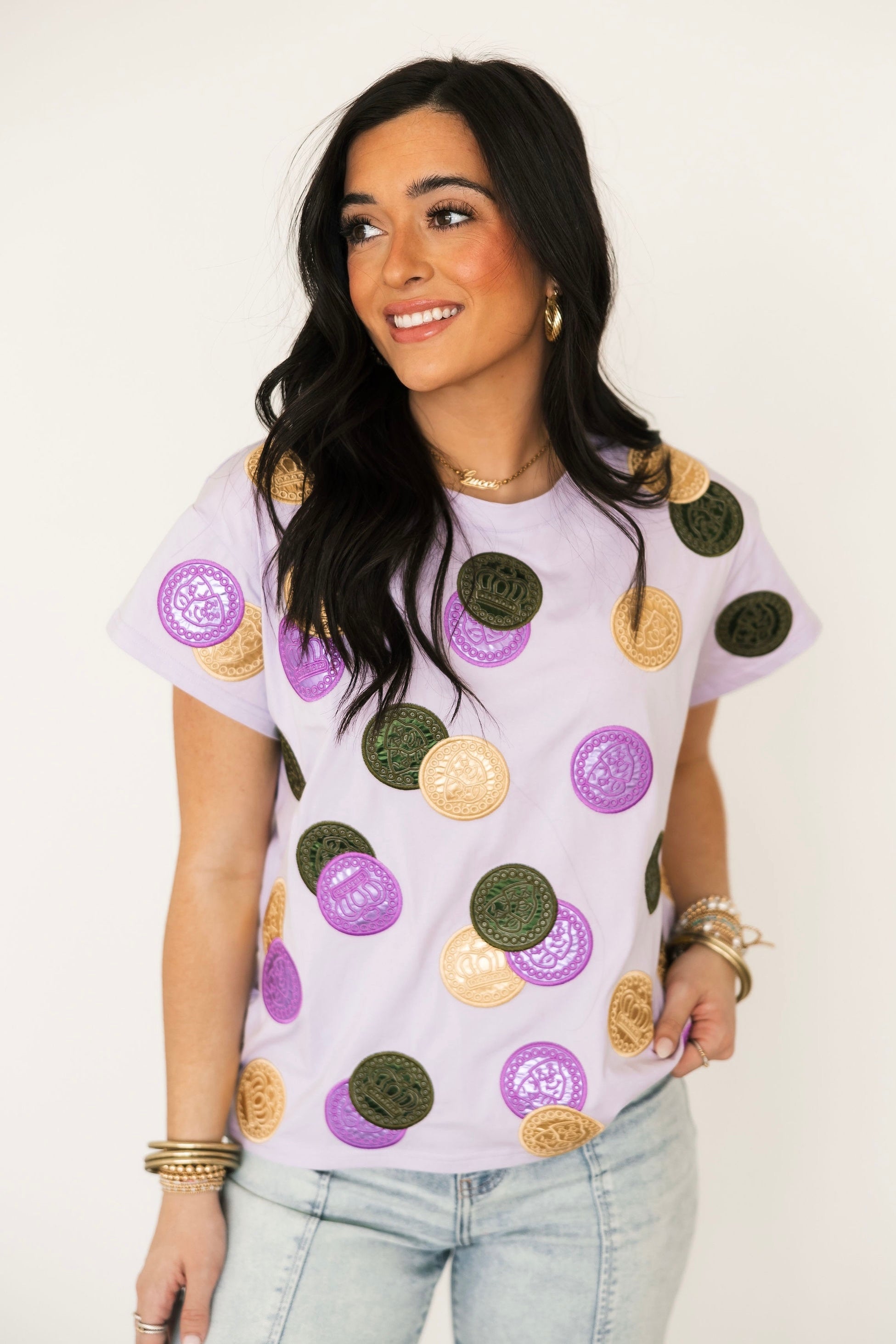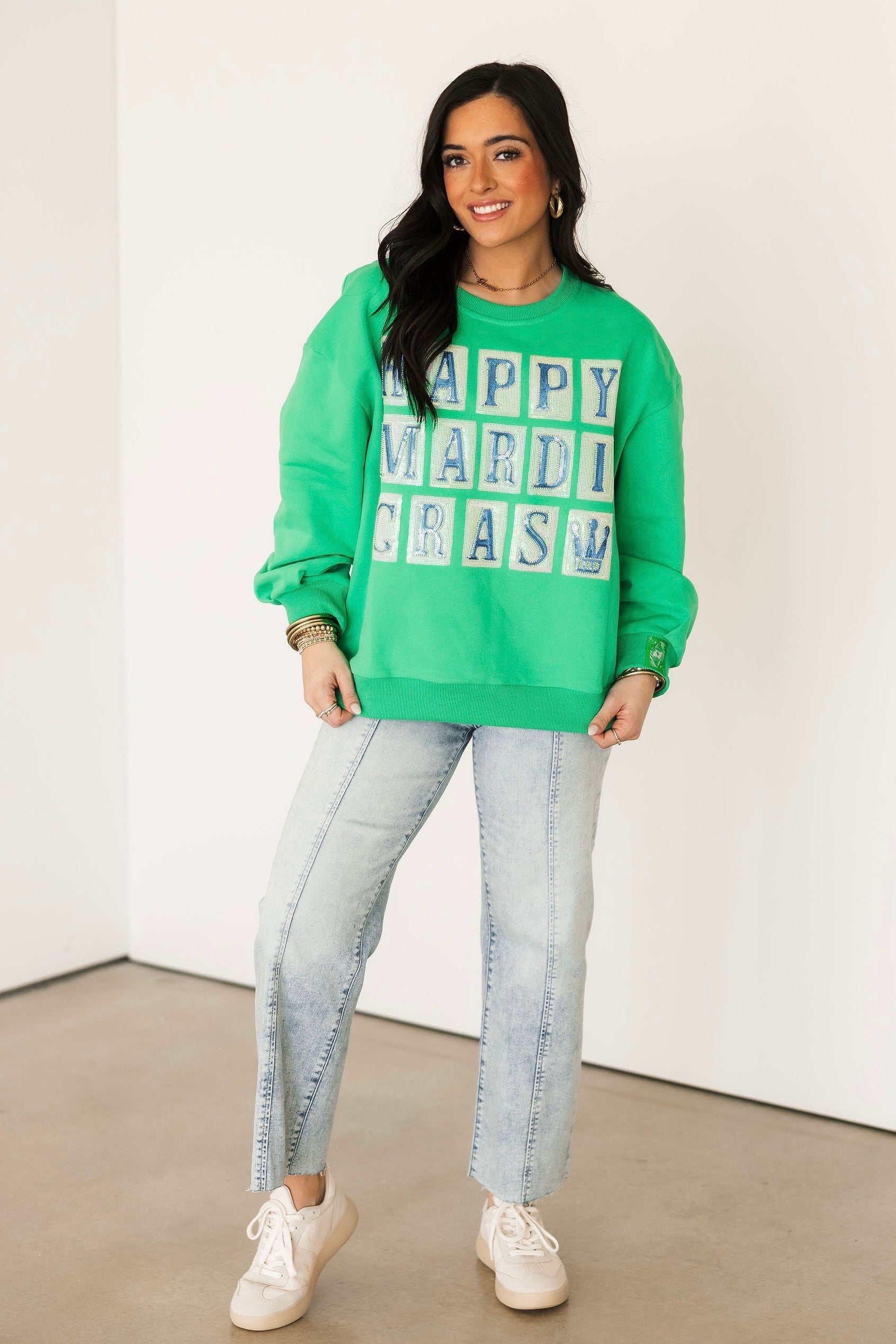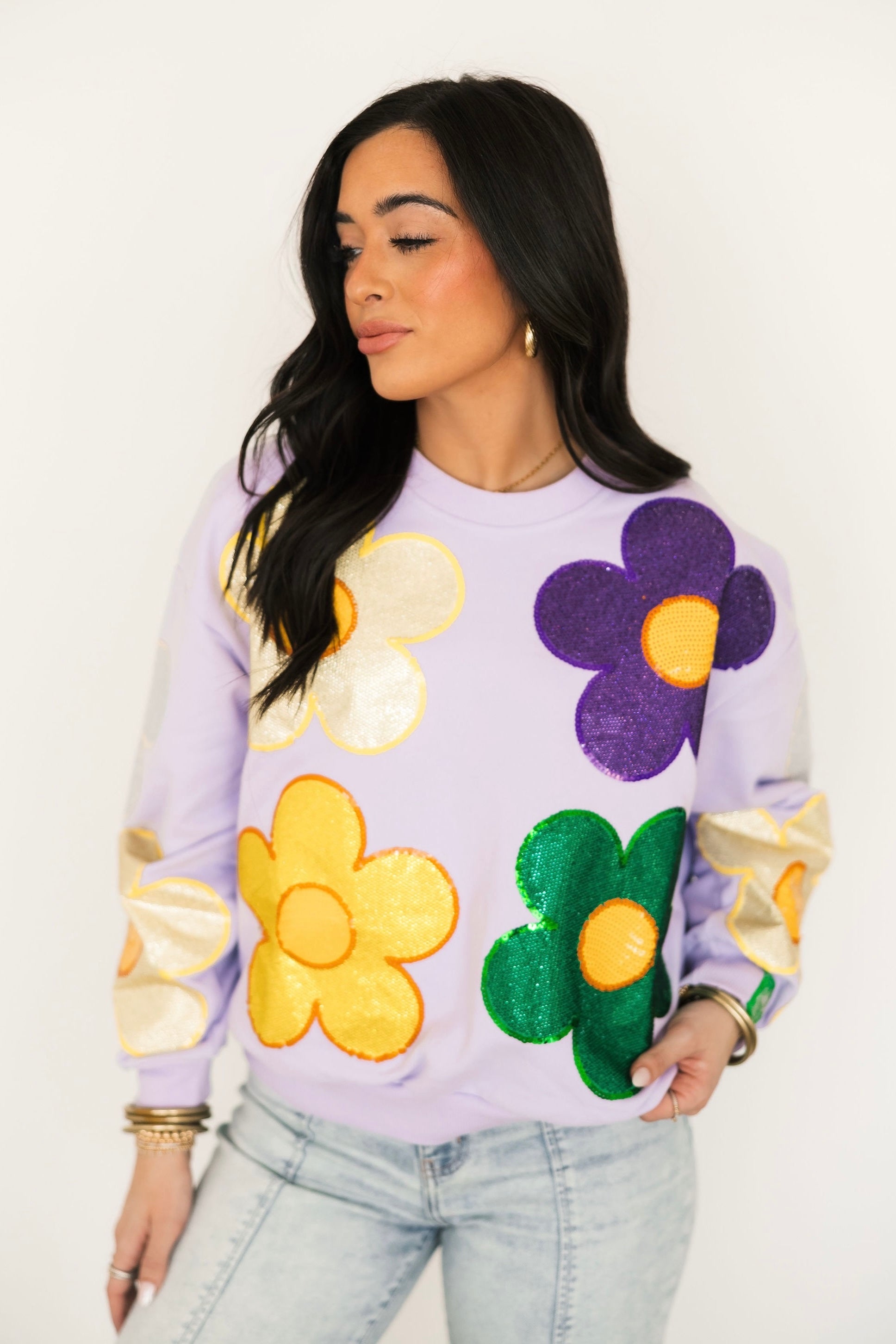 Celebrate carnival season in unforgettable style with our Queen of Sparkles Mardi Gras Collection. Designed to shine from parade routes to party nights, this collection features bold sequin Mardi Gras apparel in vibrant purple, green, and gold, complete with playful Mardi Gras-inspired designs and Queen of Sparklesβ signature hand-sewn sparkle.