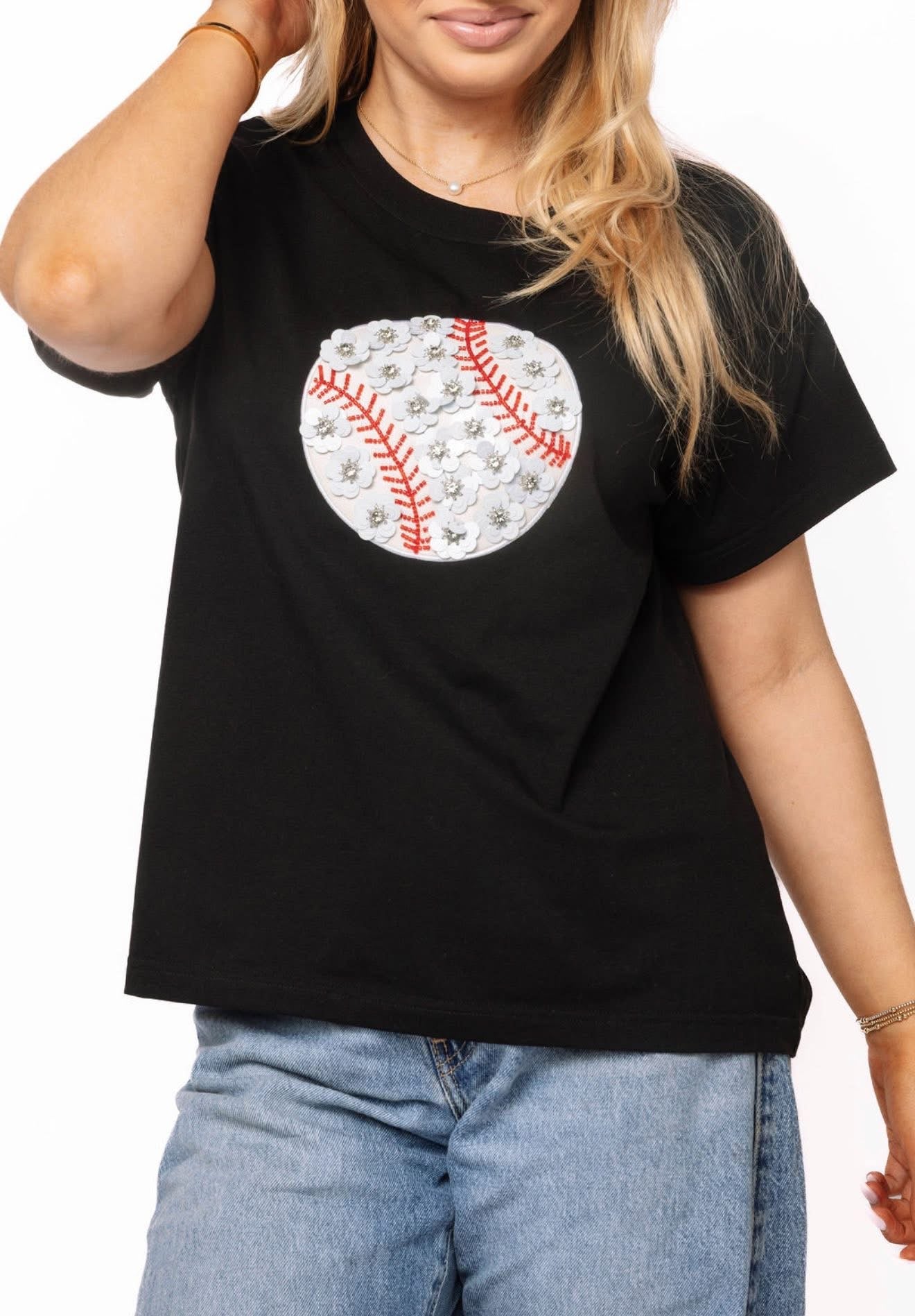 Striped Multi Baseball & Bat Tee | Queen Of Sparkles