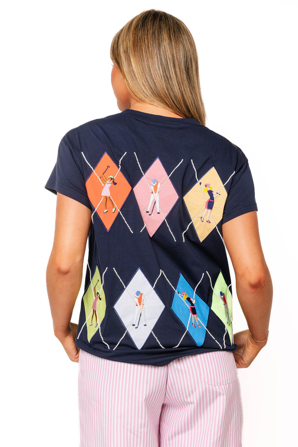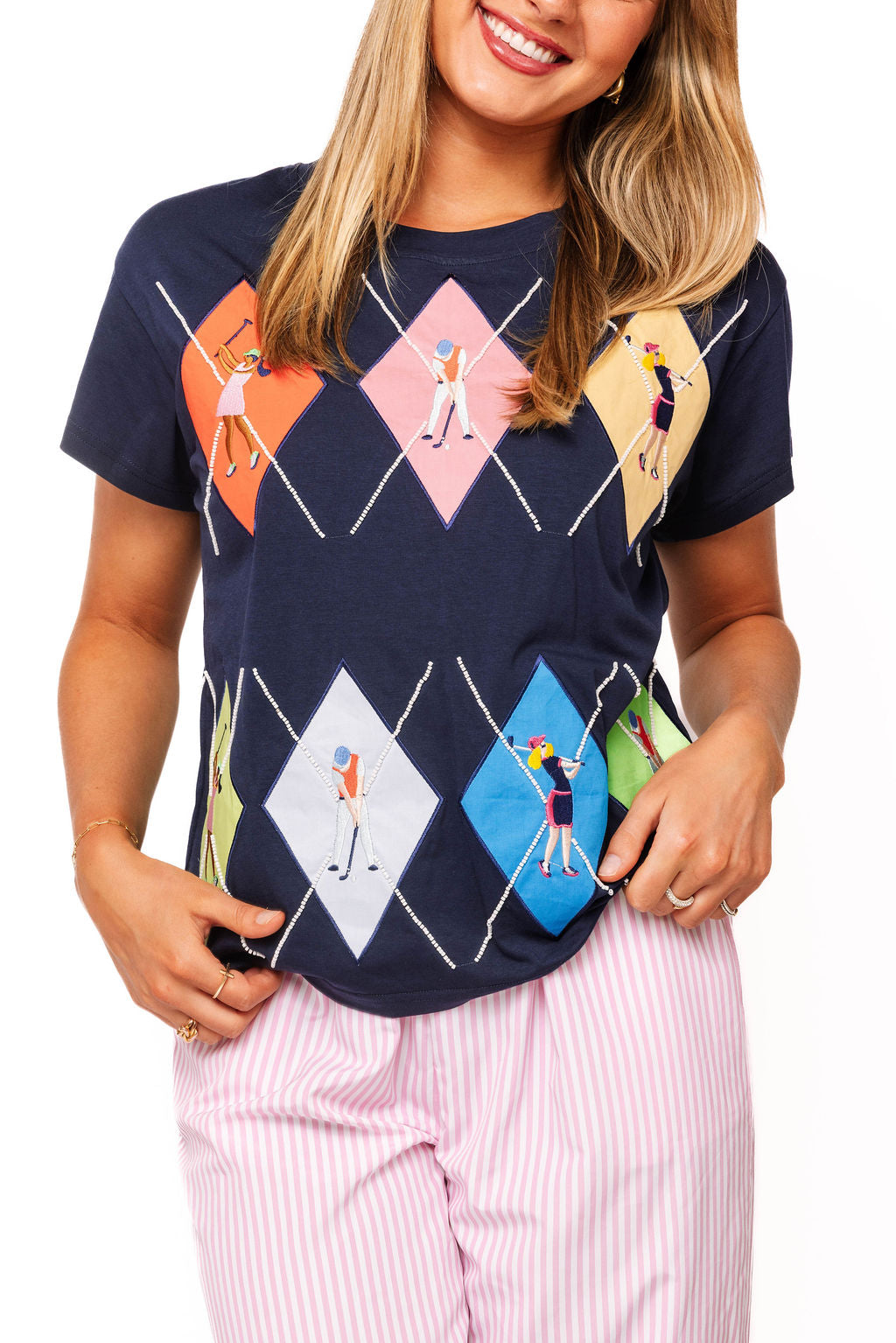 Navy Multi Argyle Golfer Tee | Queen Of Sparkles