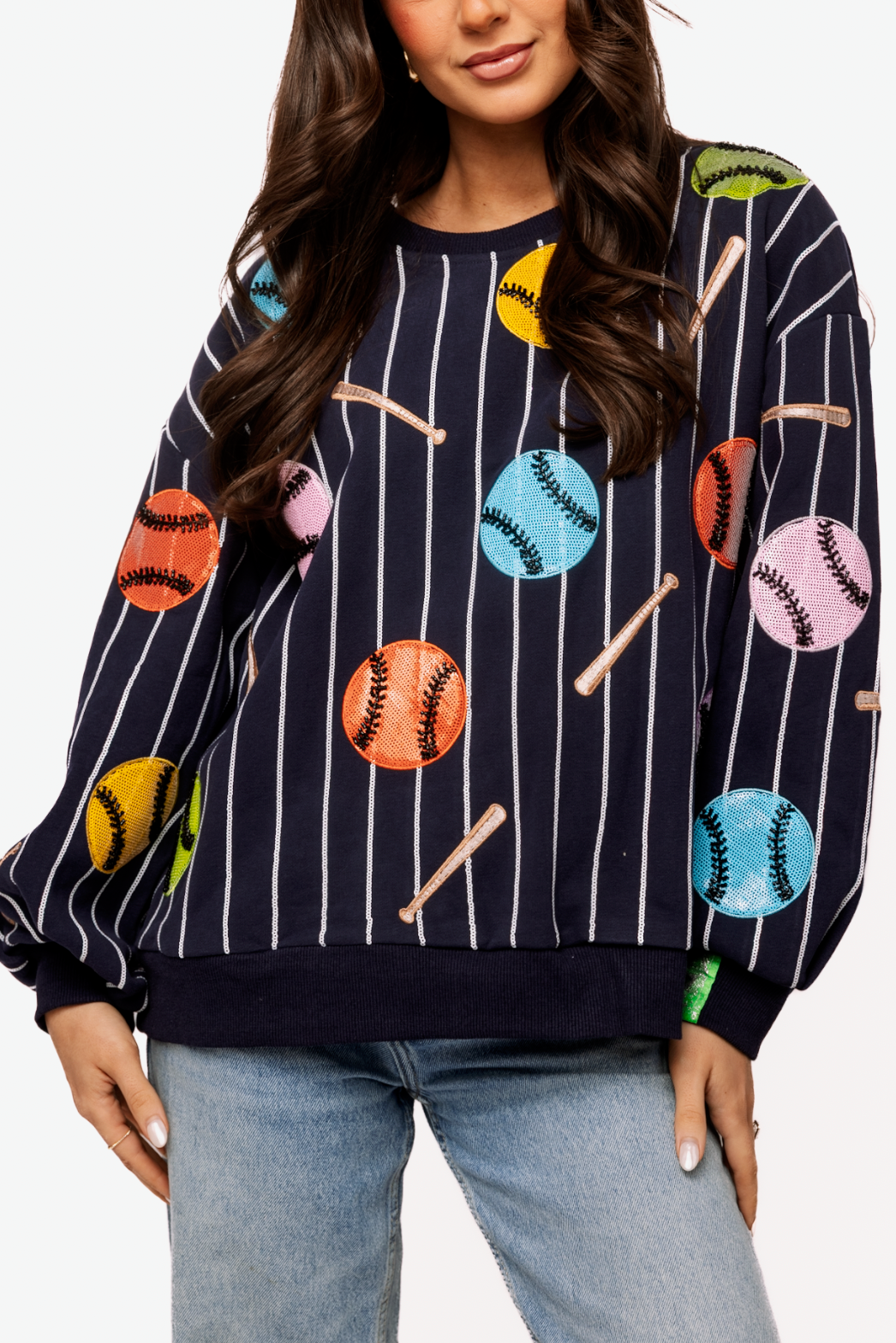 Striped Multi Baseball & Bat Sweatshirt | Queen Of Sparkles