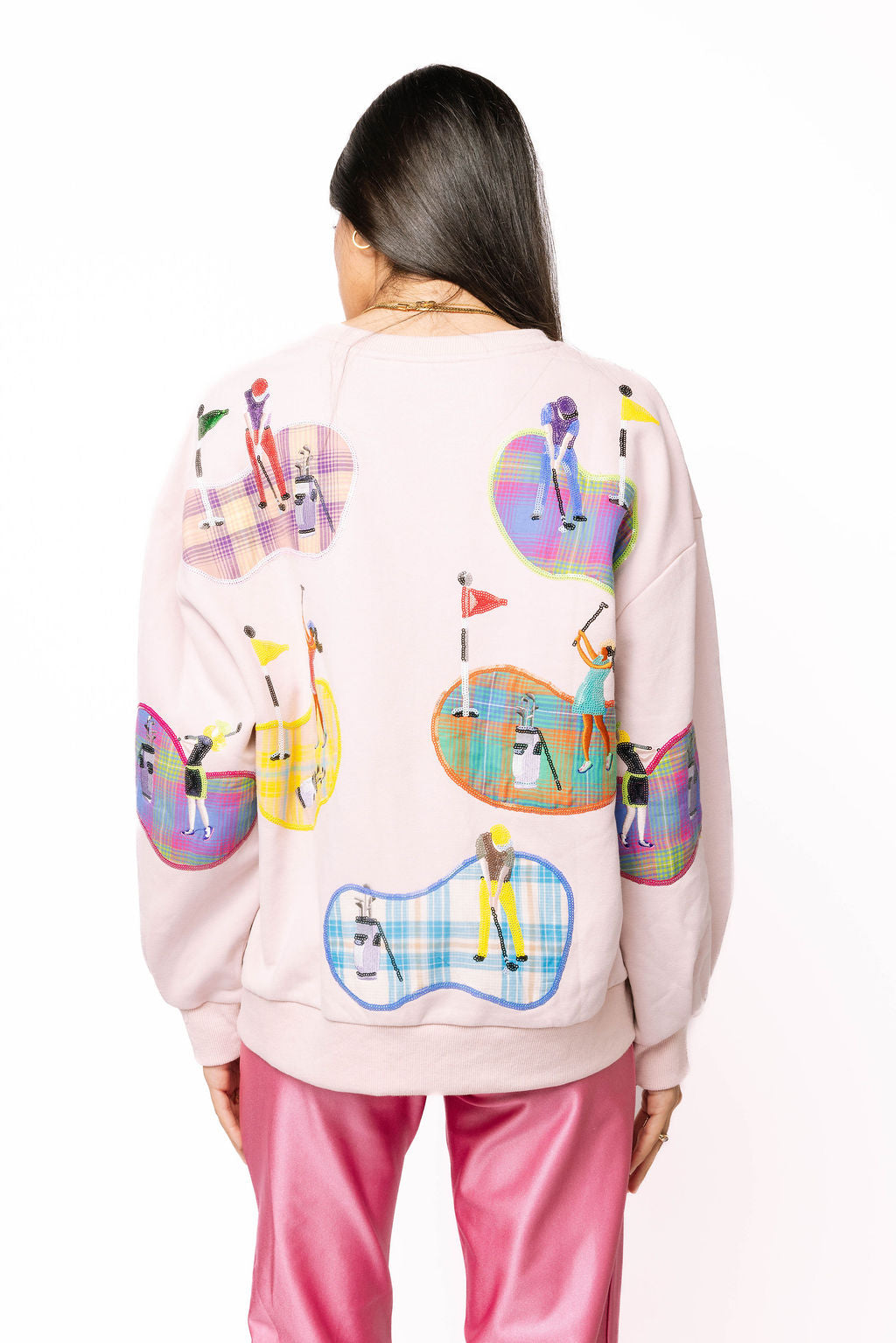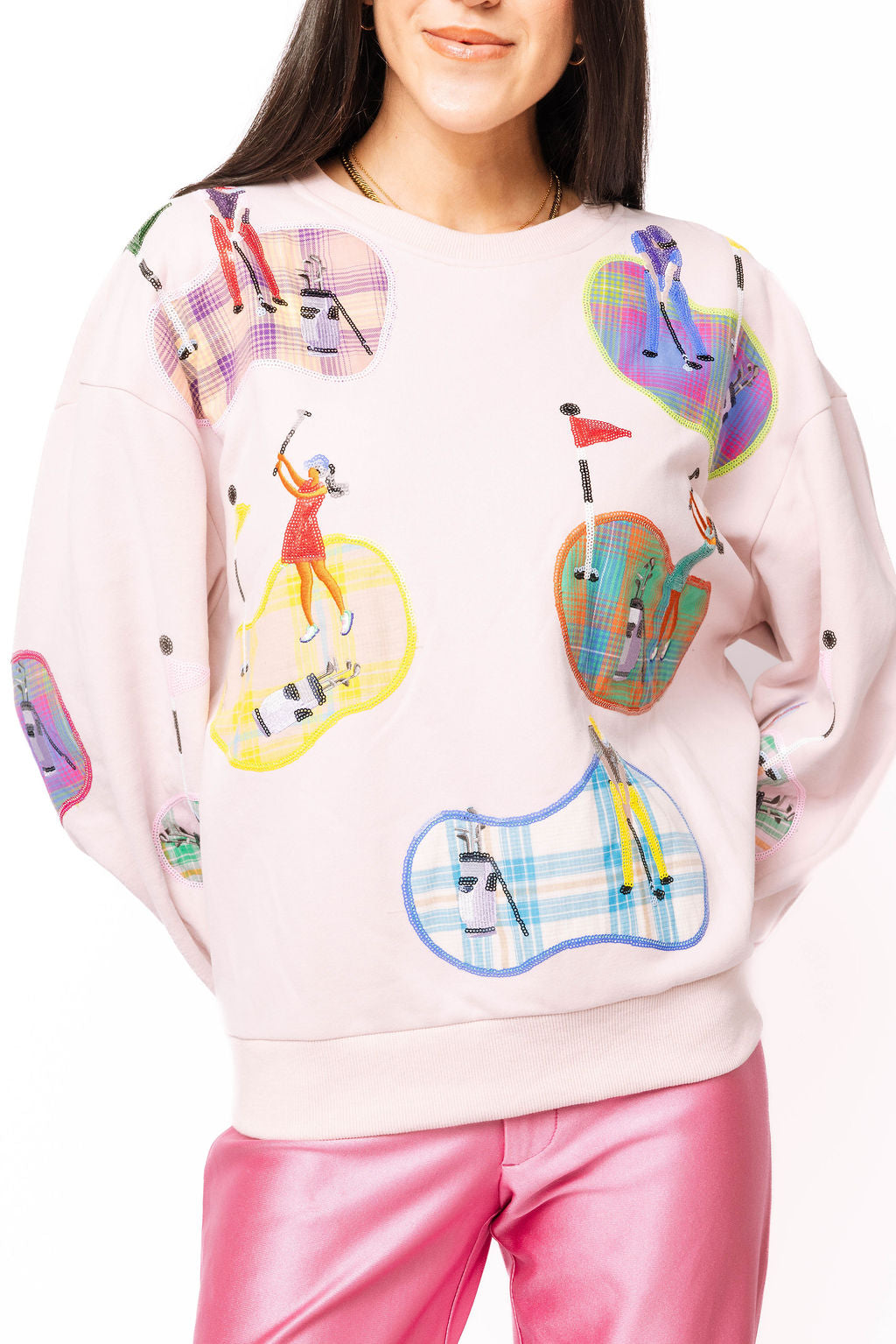 Light Pink Plaid Golfers Putting Sweatshirt | Queen Of Sparkles