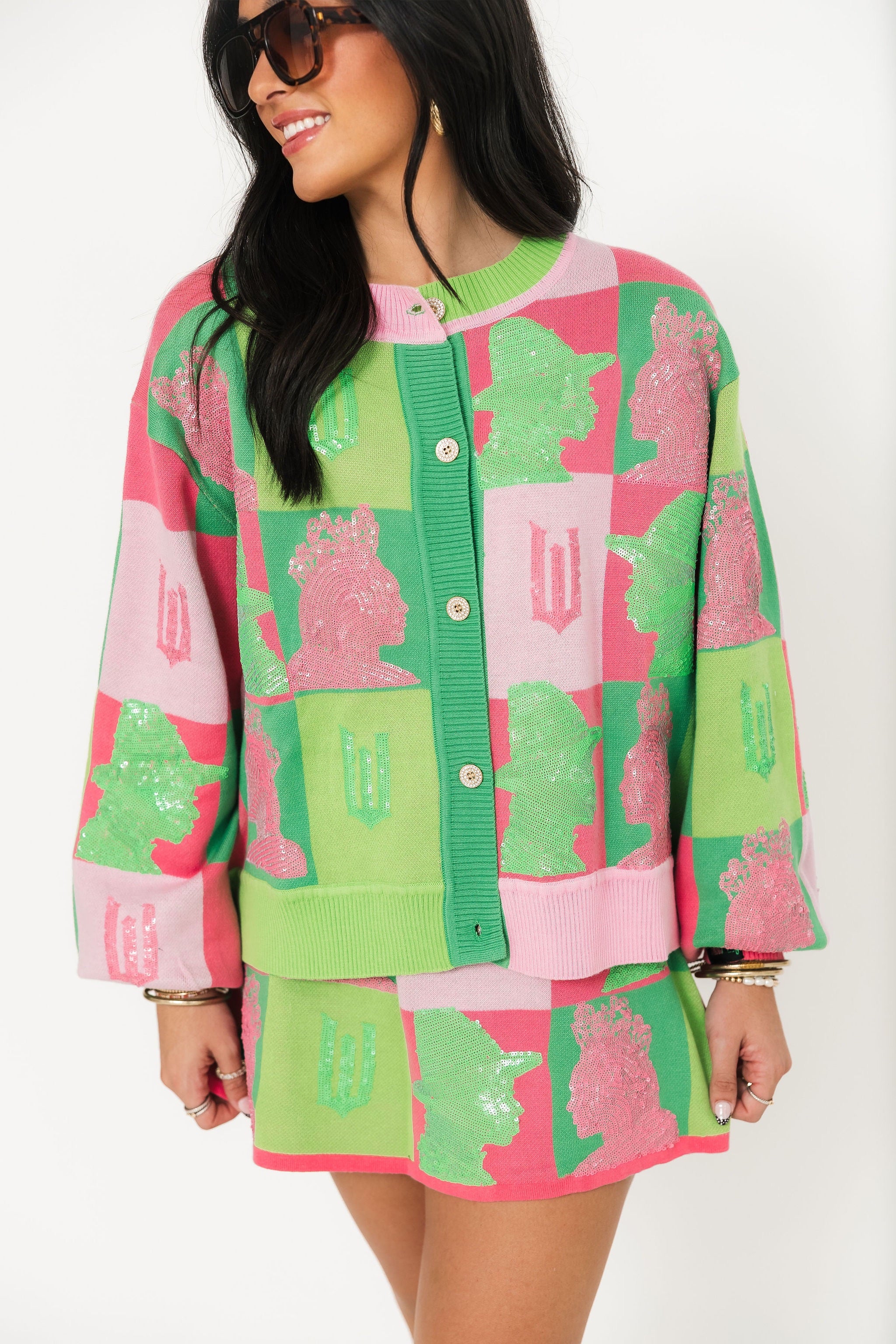 Licensed Pink & Green Colorblock Glinda and Elphaba Profile Cardigan | Queen Of Sparkles