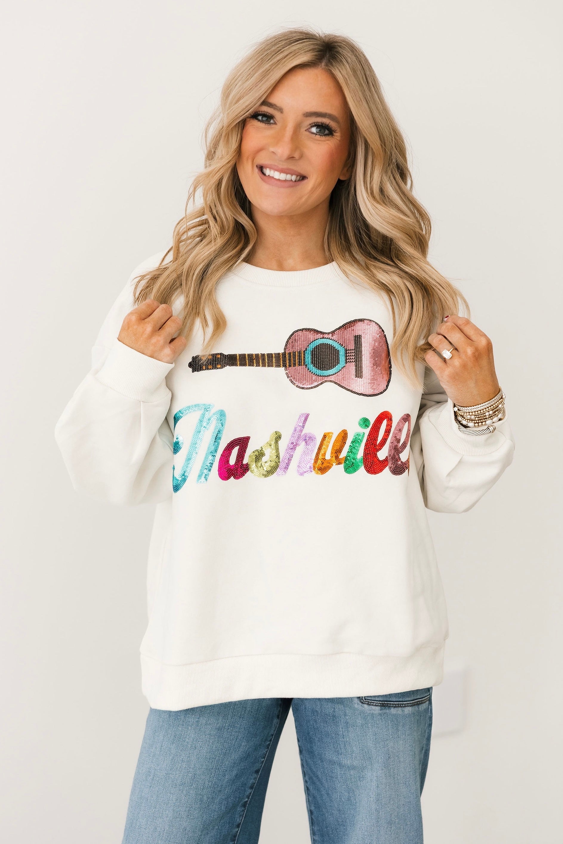 Light Beige 'Nashville' City Icon Sweatshirt | Queen Of Sparkles