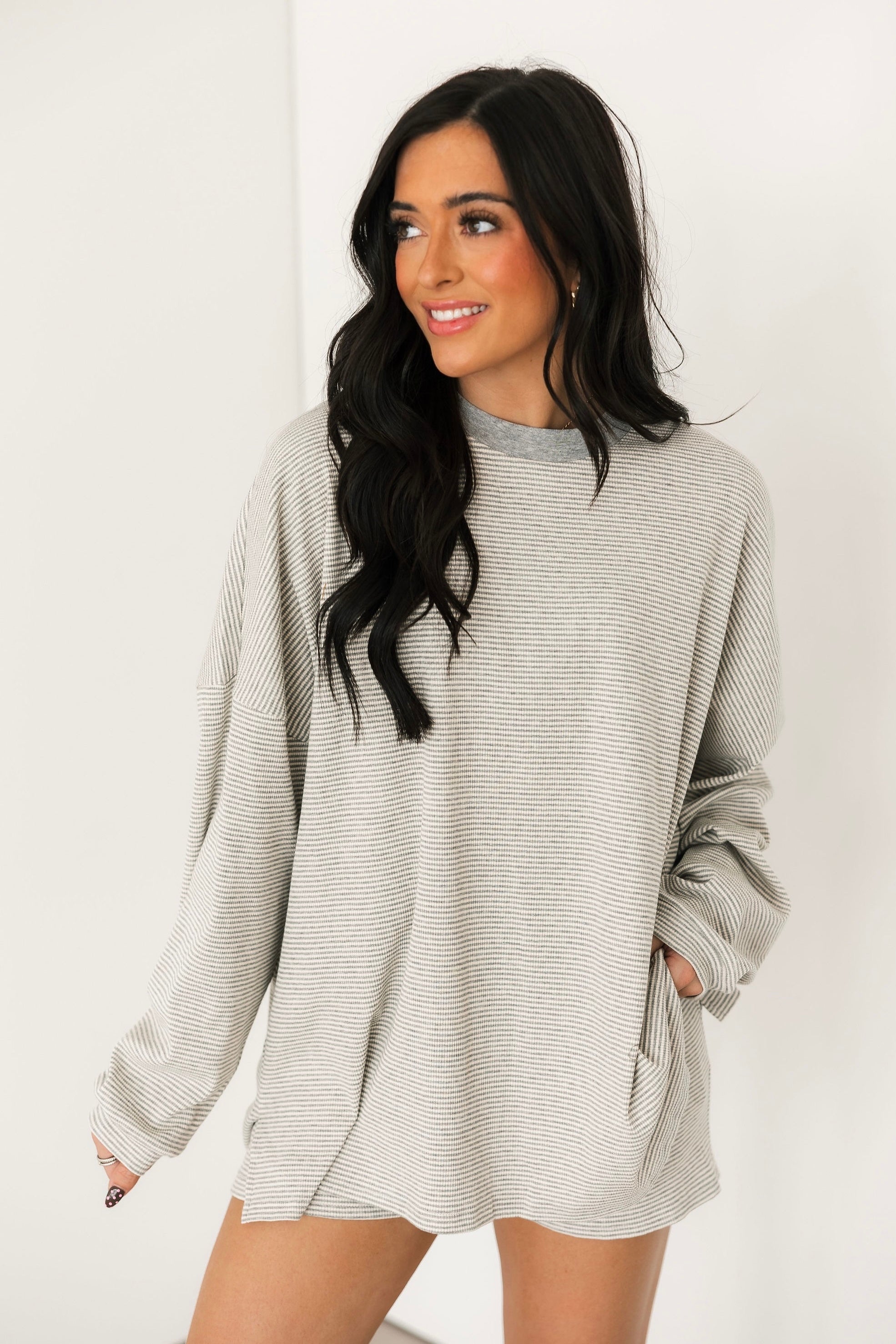 Dani Stripe Pullover Top | Charcoal