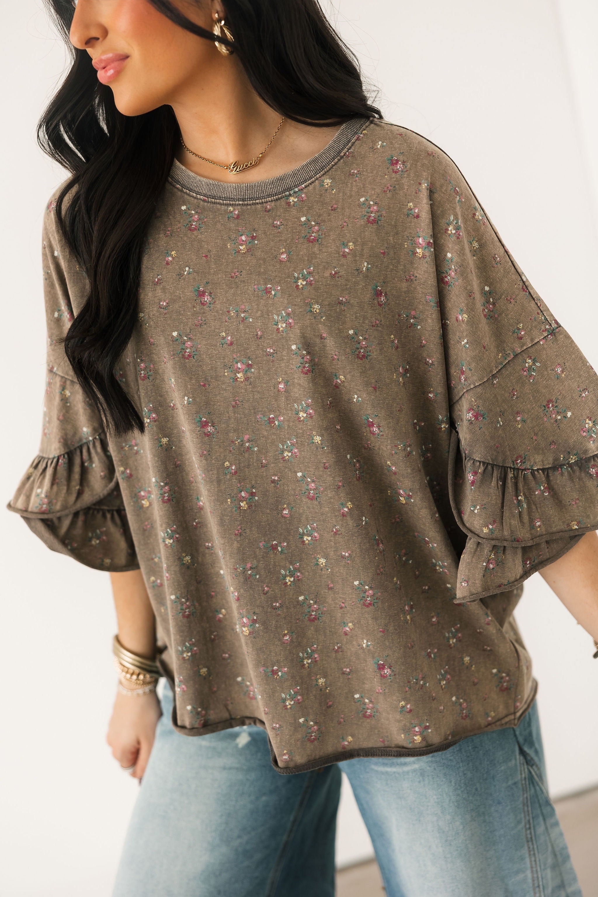 Floral Ruffle Top | Ash Mocha