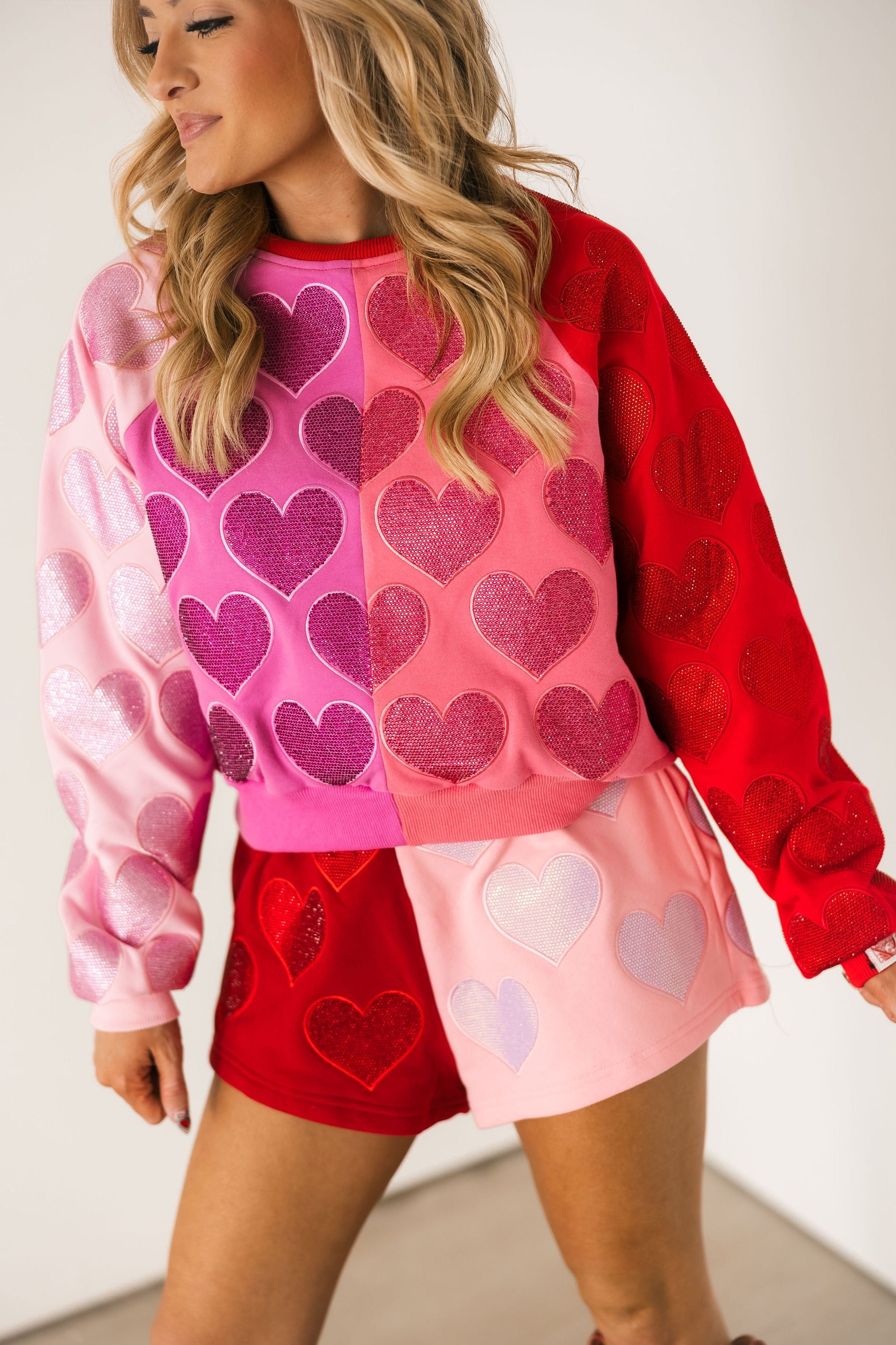 Colorblock Rhinestone Hearts Short | Queen Of Sparkles
