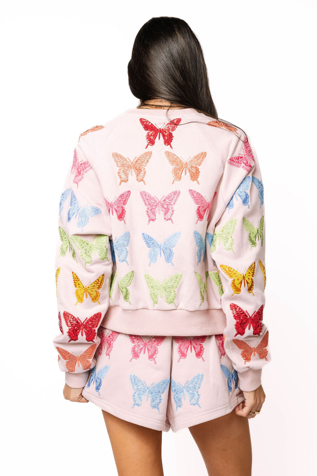 Light Pink Multi Butterfly Sweatshirt | Queen Of Sparkles