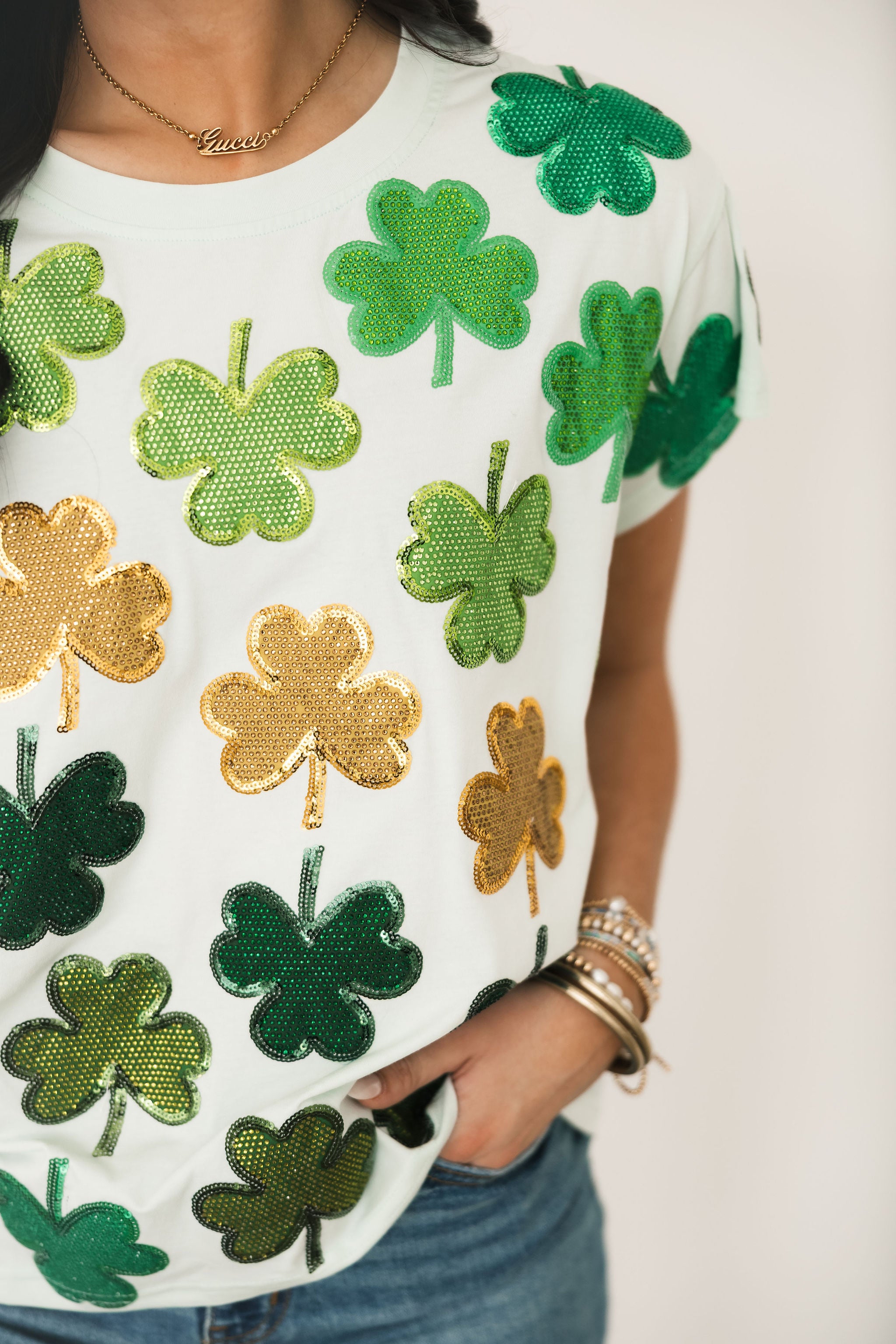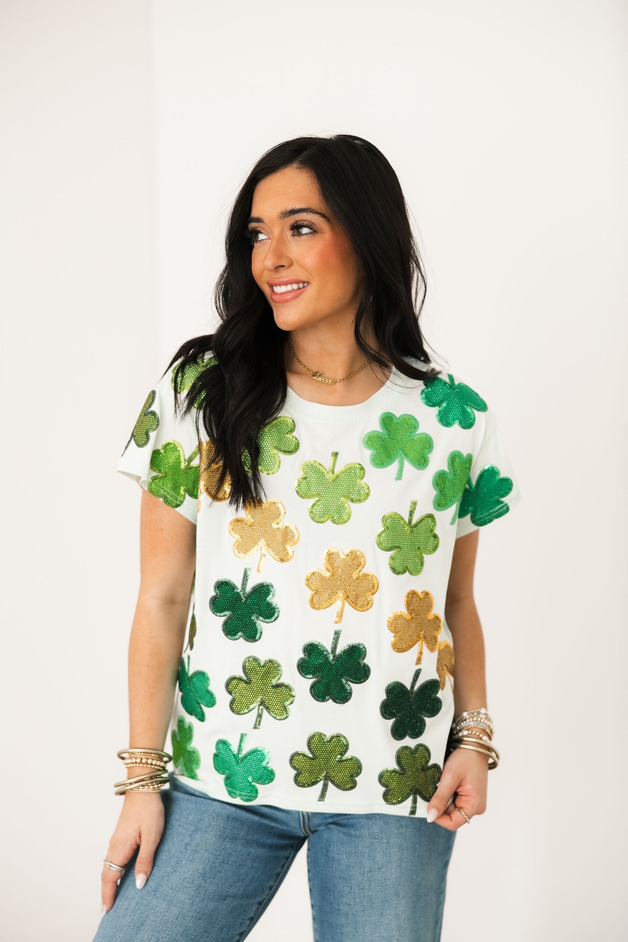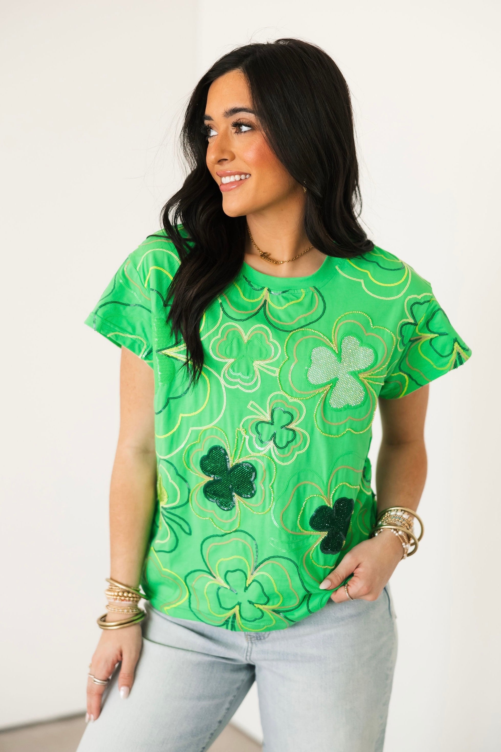 Light Green Rhinestone Shamrock Tee | Queen Of Sparkles
