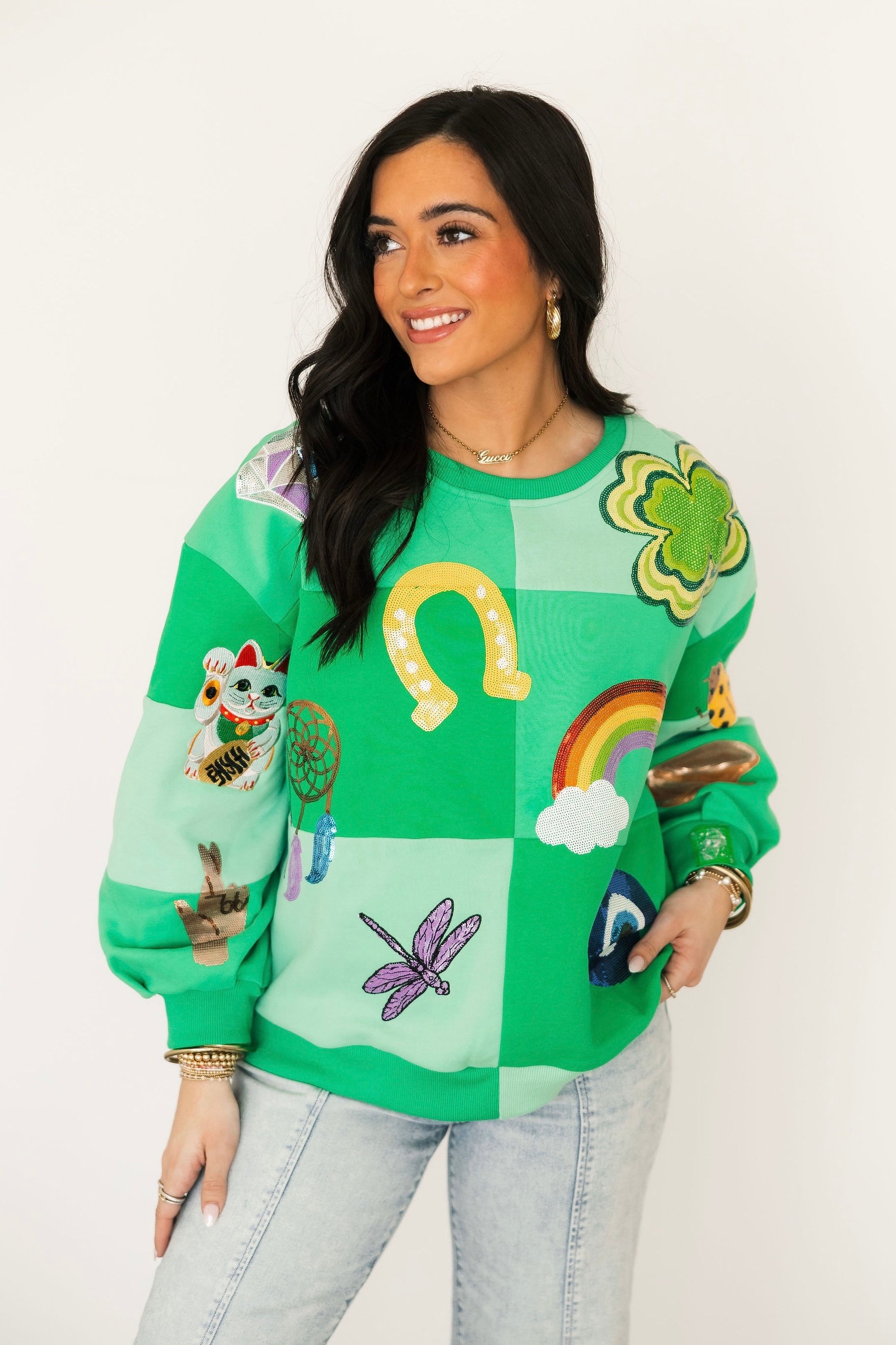 Green Checkered Lucky Icon Sweatshirt | Queen Of Sparkles