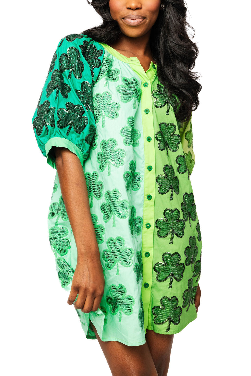 Rhinestone Shamrock Button Up Dress | Queen Of Sparkles