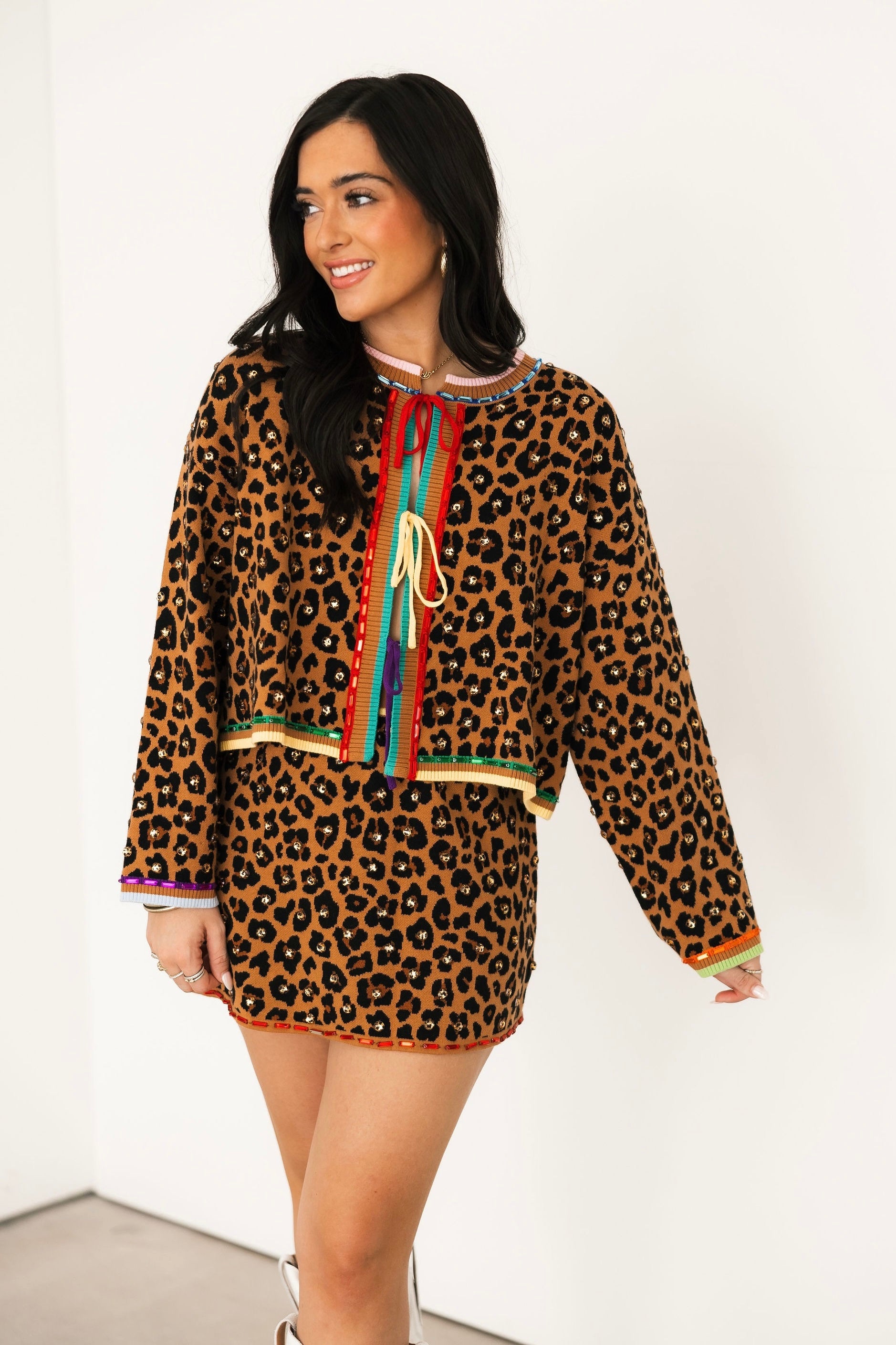 Leopard Multi Tie Rhinestone Sweater | Queen Of Sparkles