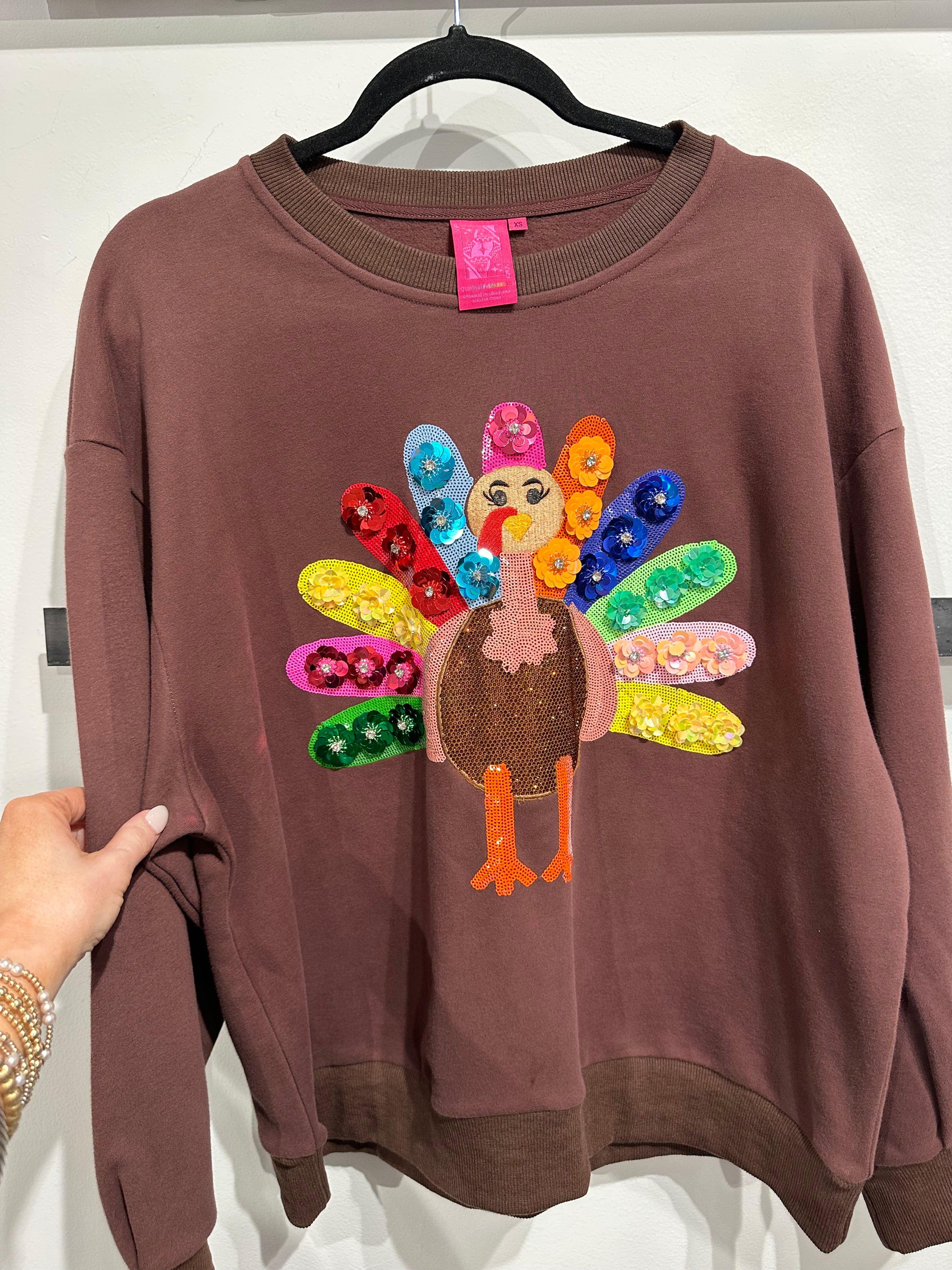 Brown Rainbow Flower Turkey Sweatshirt | Queen Of Sparkles