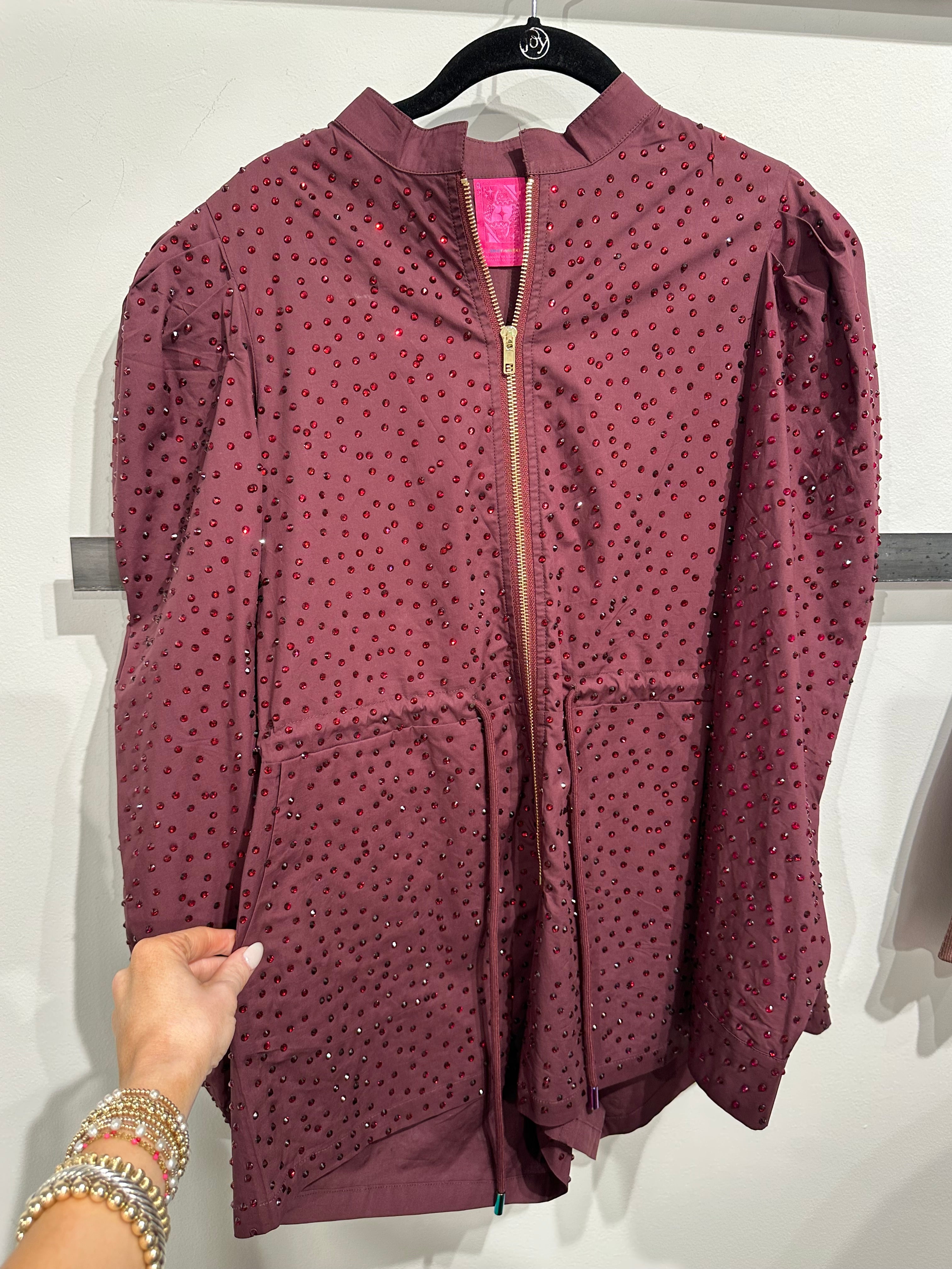 Maroon Jeweled Long Sleeve Zipper Romper | Queen Of Sparkles