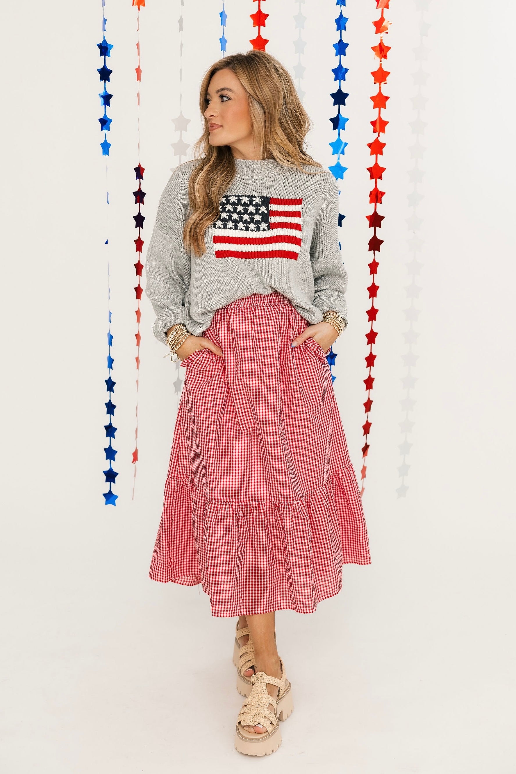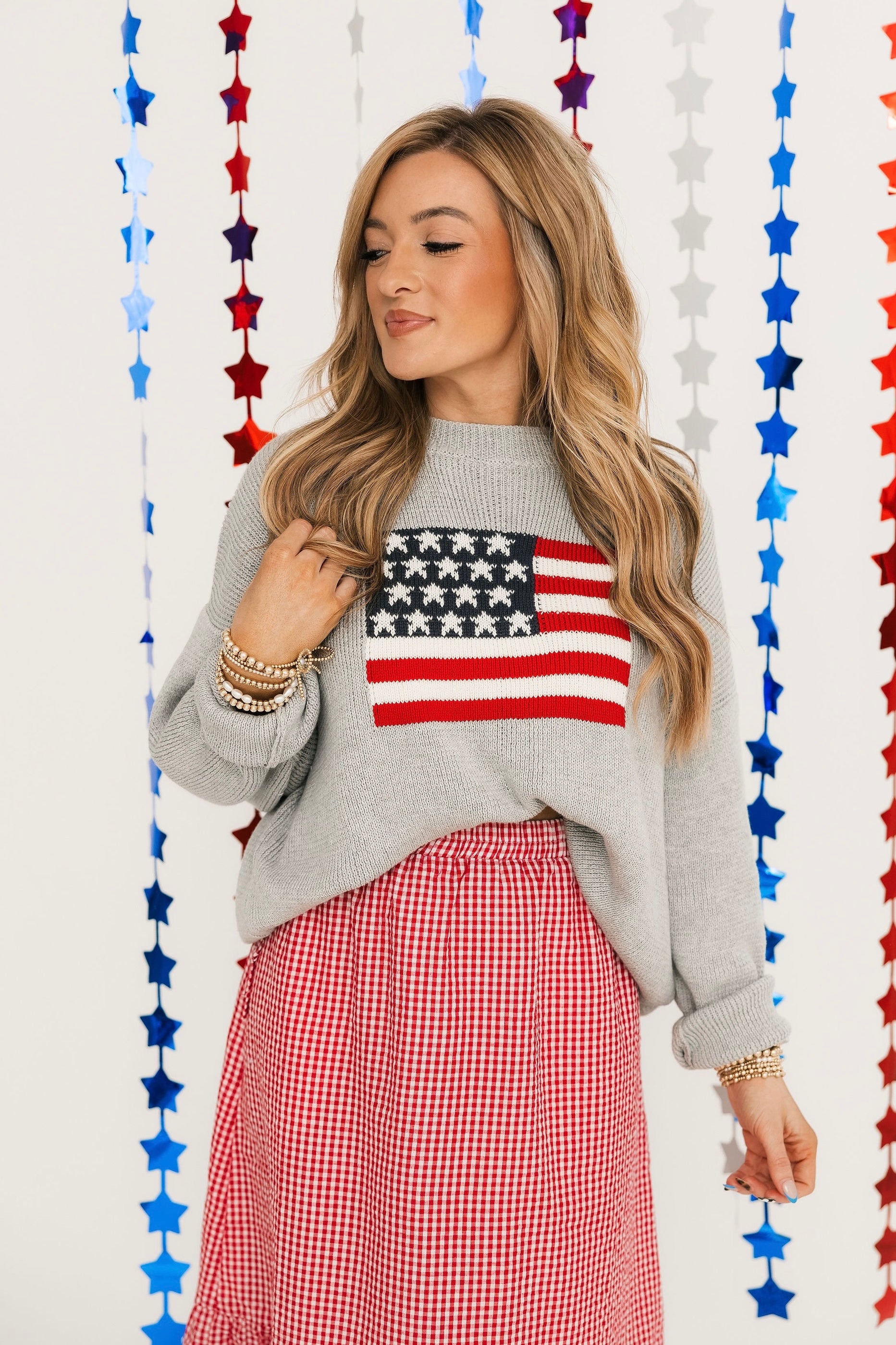Stars, stripes, and chill vibes—the American Flag Sweater is your go-to for cozy patriot style. With its oversized, slouchy fit and soft knit feel, it’s perfect for fireworks, lake nights, and everything in between. 🇺🇸✨ Lexi is wearing an XS.