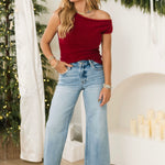 Elevate your outfit with this asymmetric fuzzy sweater top, where soft textures meet modern edge. The unique cut adds a trendy twist to your casual look, making it perfect for pairing with denim or with a mini skirt. Lexi is wearing a small.