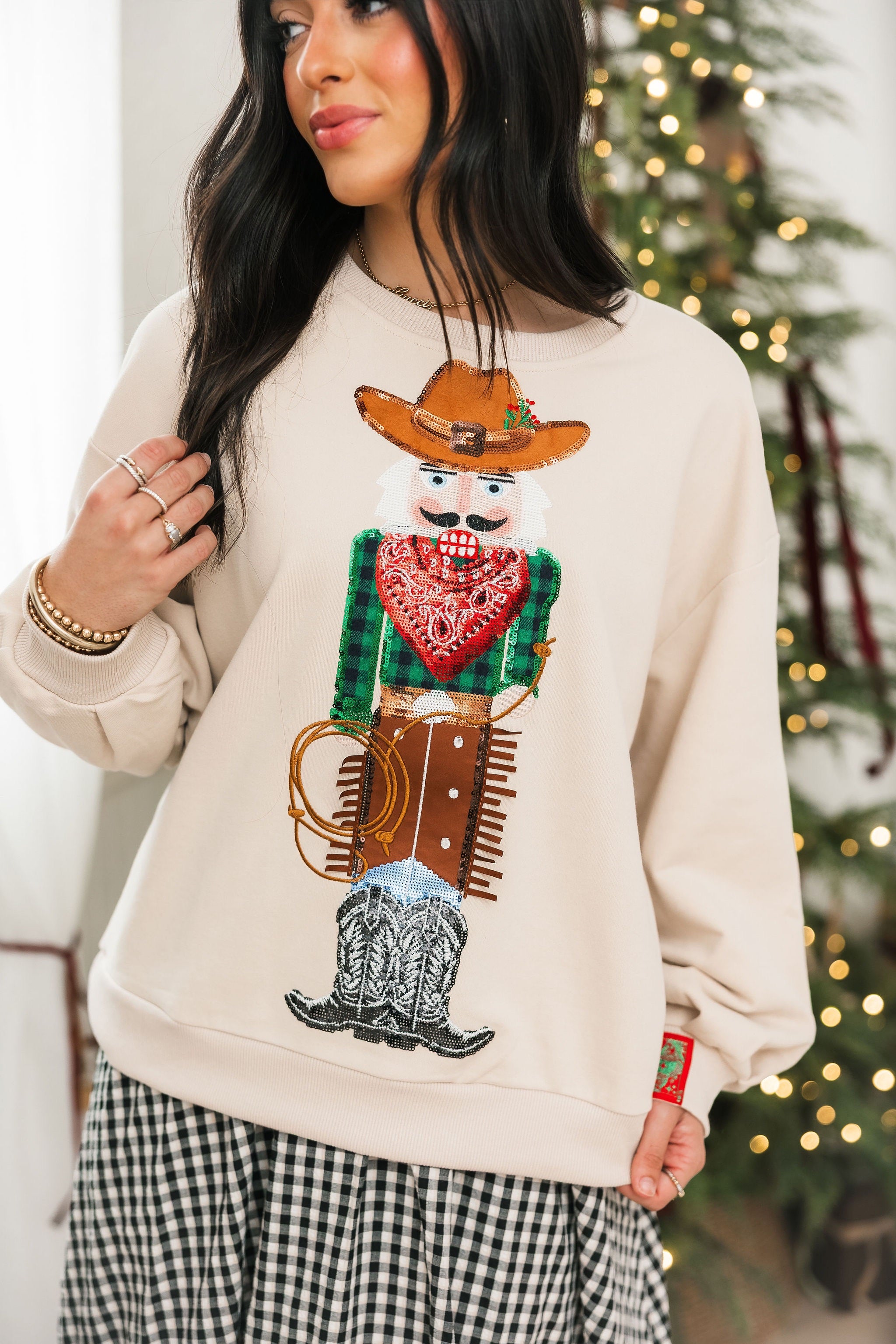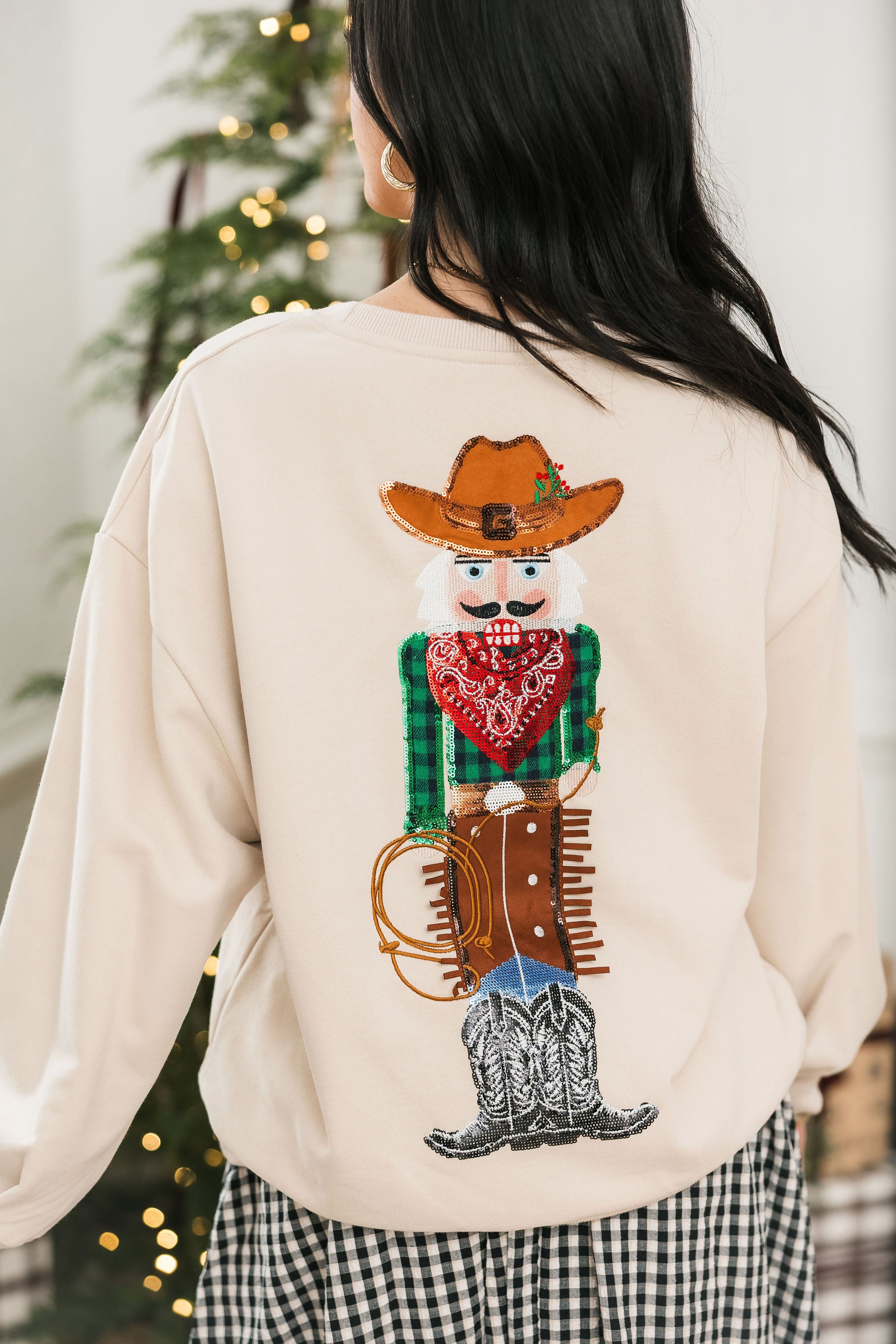 Beige Cowboy Nutcracker Sweatshirt | Queen Of Sparkles