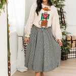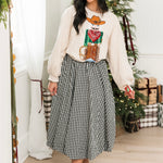 The Queen Of Sparkles Beige Cowboy Nutcracker Sweatshirt features a relaxed fit with a classic crewneck and long sleeves. Designed on a neutral beige base, it’s finished with a shimmering cowboy-inspired nutcracker graphic for a bold and cheeky holiday statement. Cozy enough for everyday wear but dazzling enough for parties, this one’s a true seasonal standout. Sage is wearing an XS.