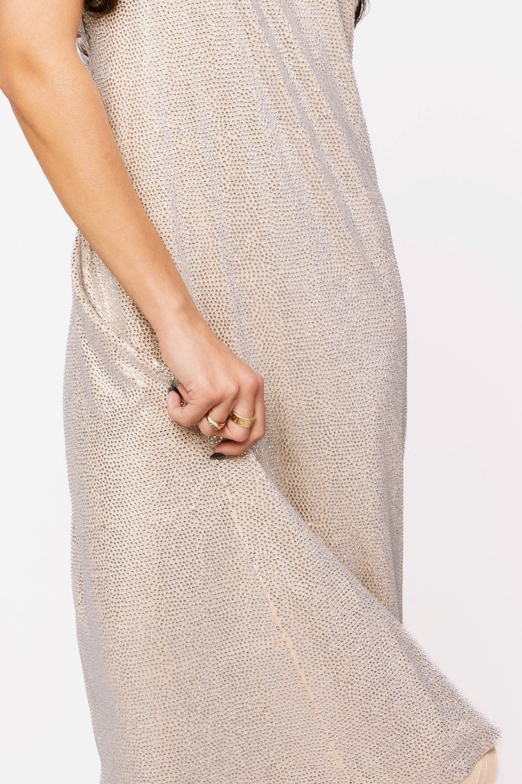 Beige Full Rhinestone Active Midi Dress | Queen Of Sparkles