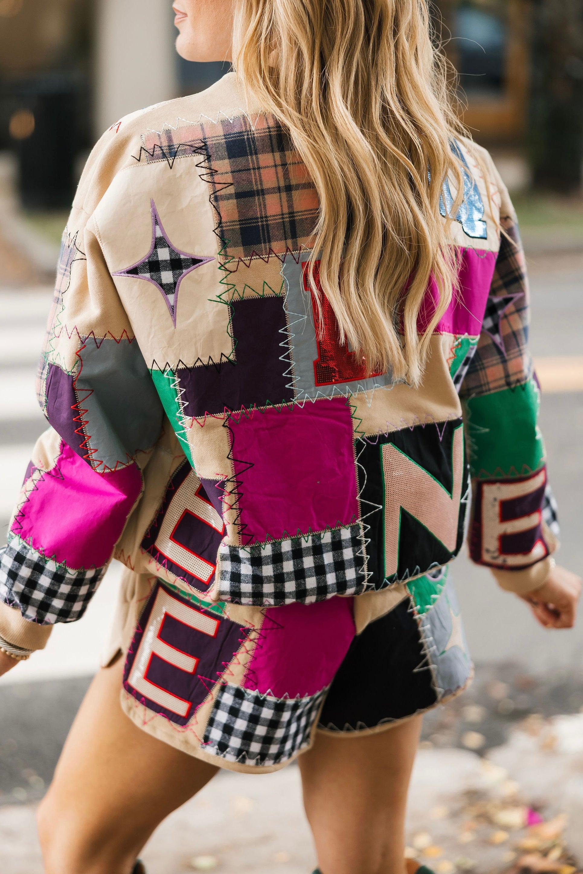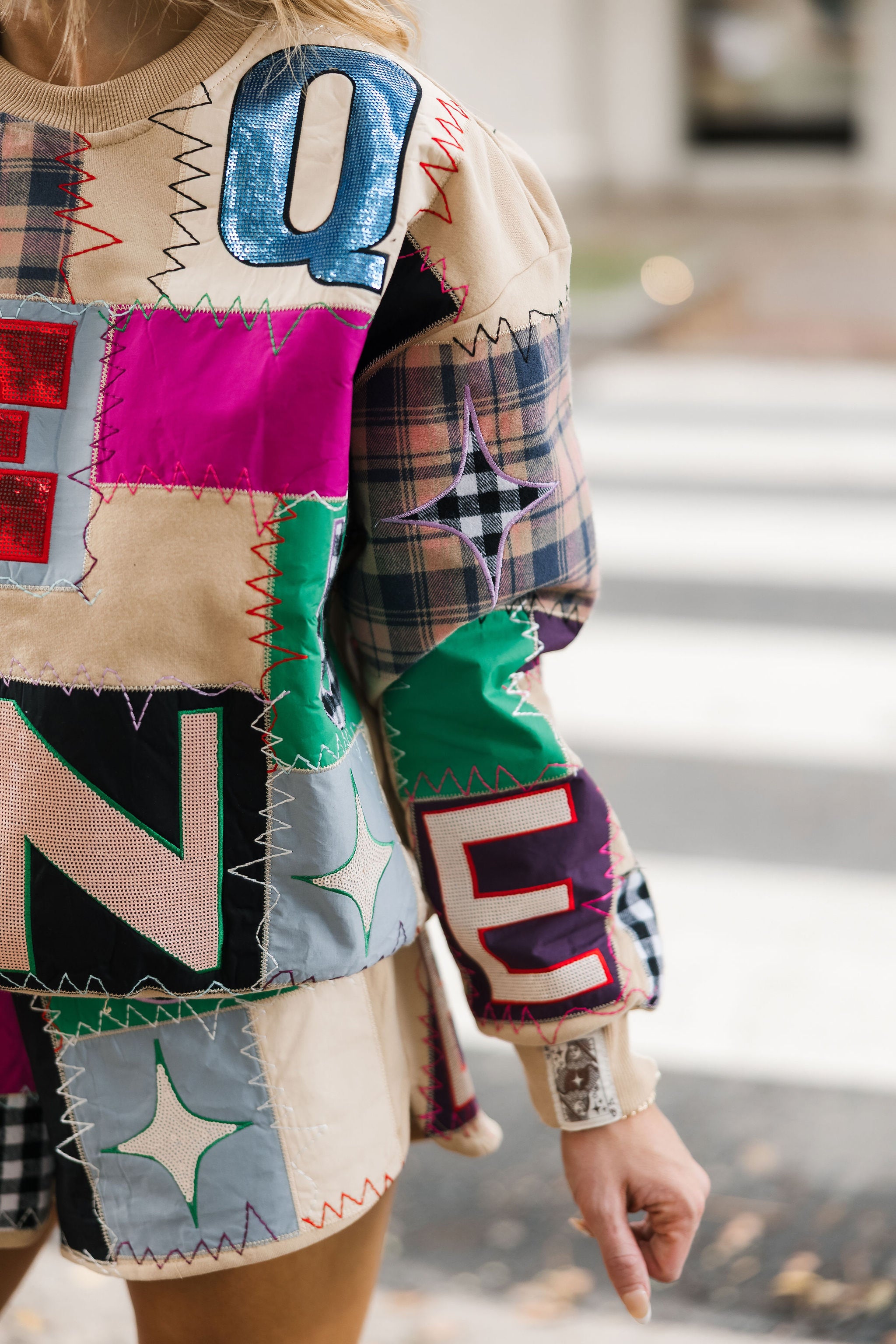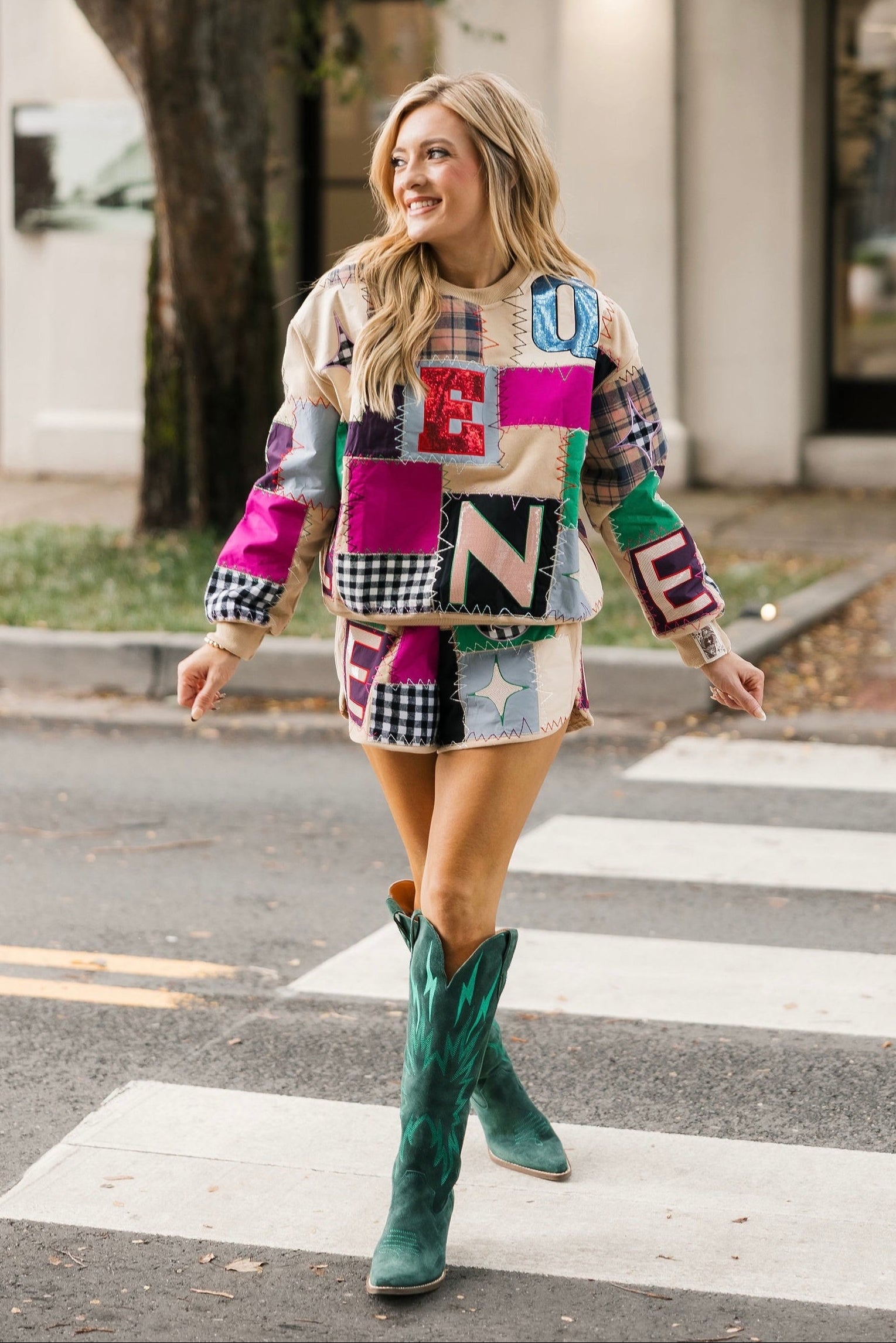 Queen Of Sparkles Beige Mutli Queen Patchwork Sweatshirt