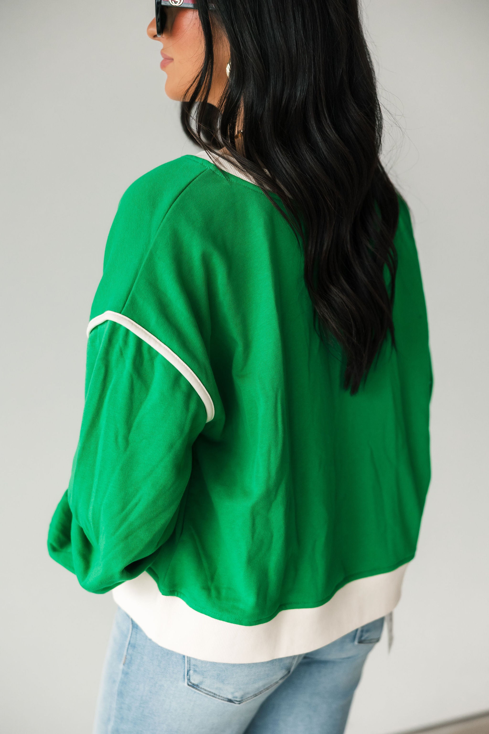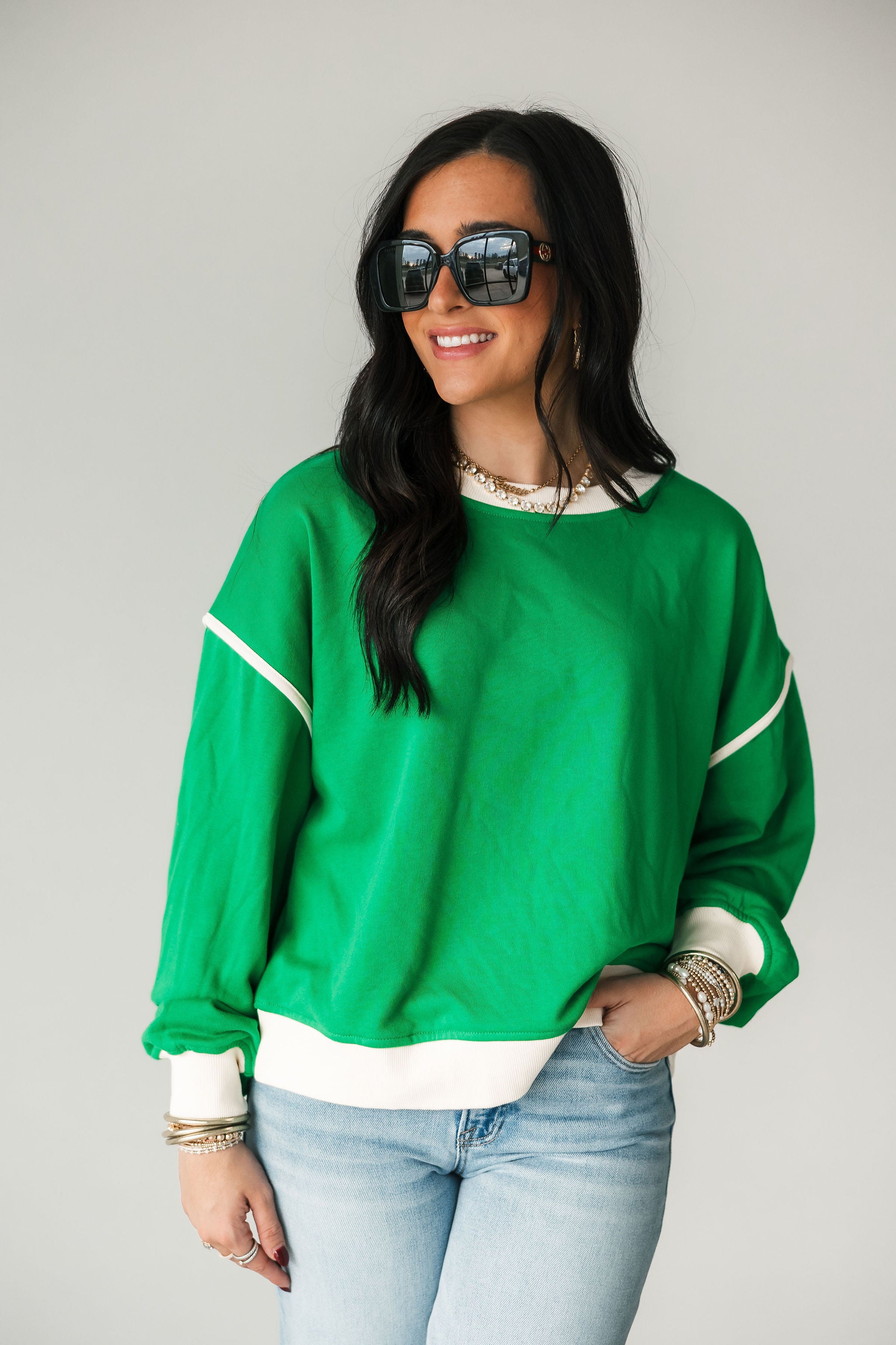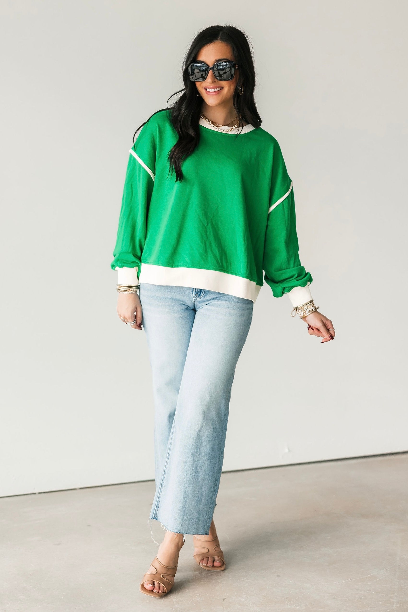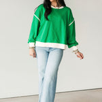 This lightweight long-sleeve top with a round neckline and contrasting trim is your new favorite for easy, standout style. Fun, fuss-free, and totally fab! Sage is wearing a small.