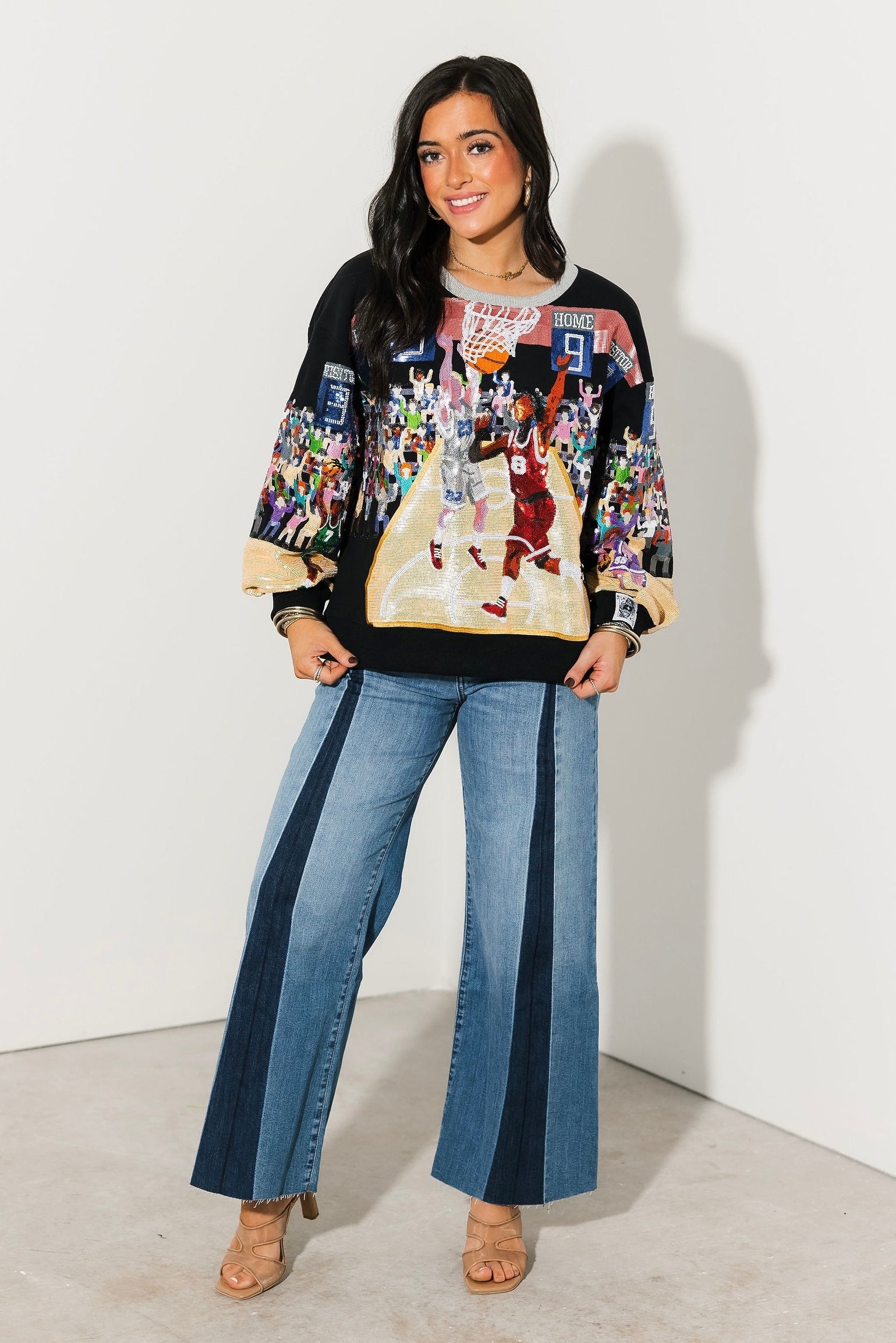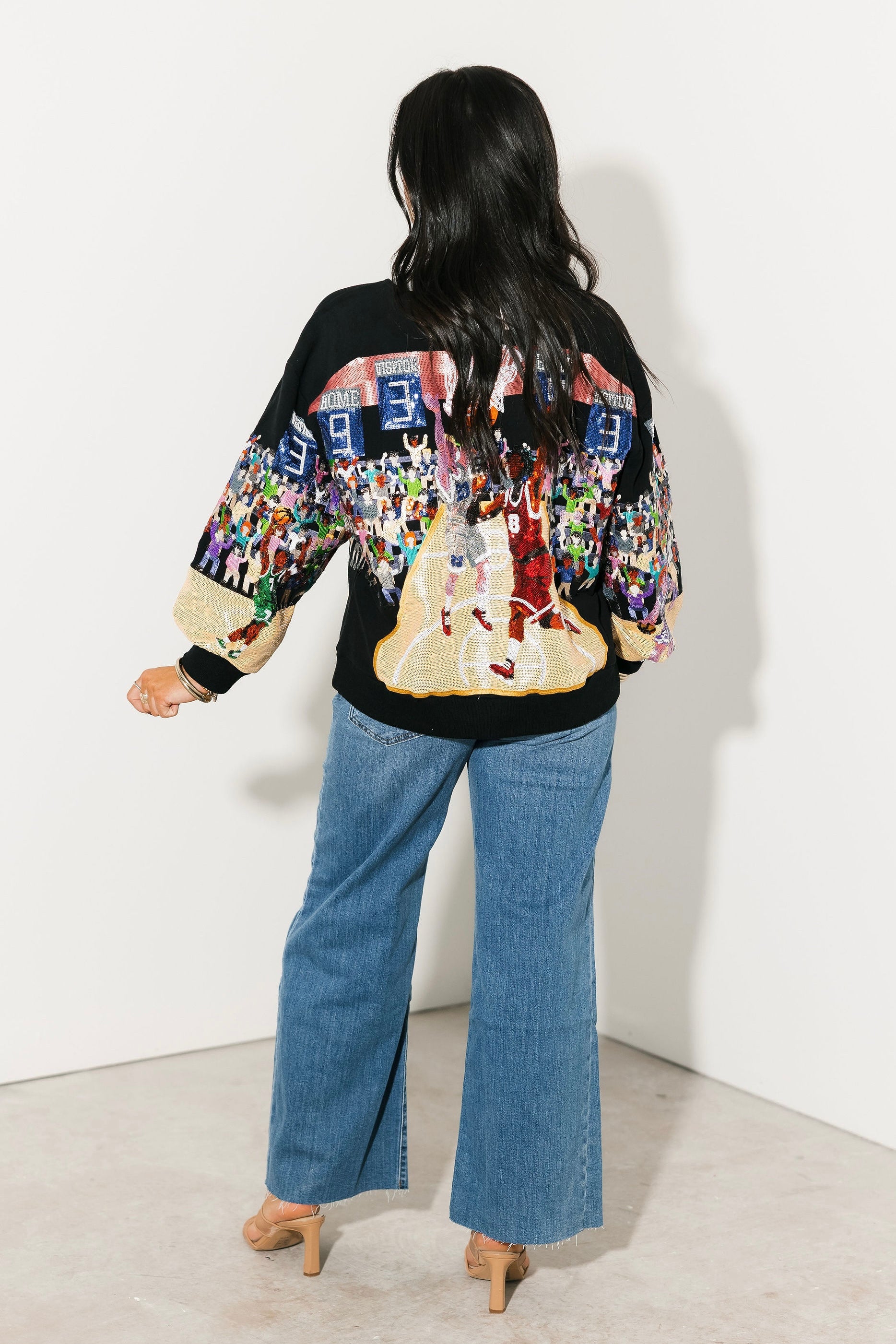 Black Basketball Court Scene Sweatshirt | Queen Of Sparkles