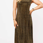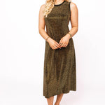 Shine with ease in the Queen Of Sparkles Black & Gold Full Rhinestone Active Midi Dress. Featuring a relaxed fit, sleeveless cut, and allover rhinestone embellishments, this dress is both comfortable and eye-catching. Perfect for dressing up with heels and accessories or keeping it casual with sneakers, this versatile midi is a dazzling choice for any occasion.