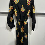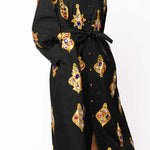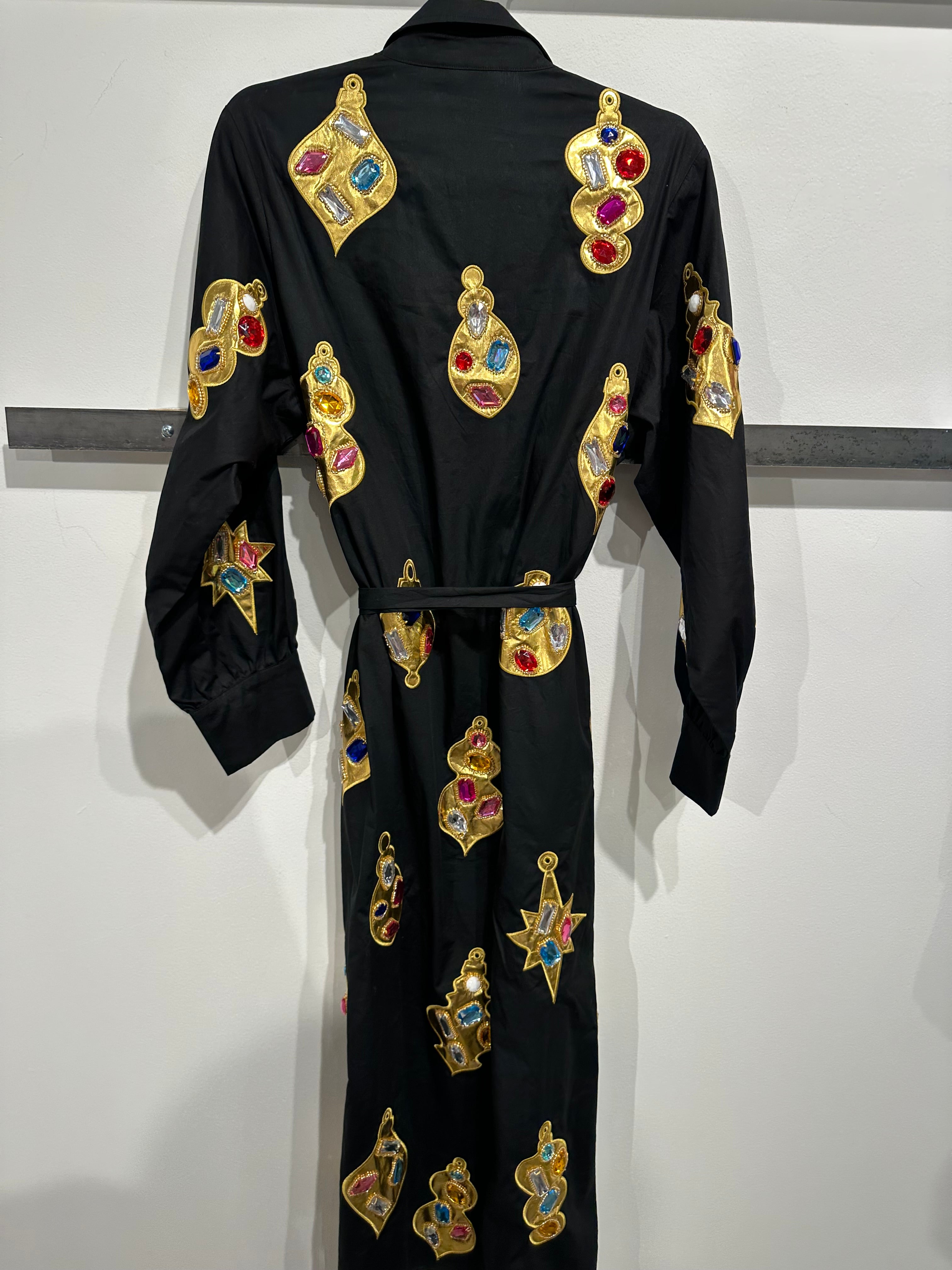 Black & Gold Jeweled Ornament Cotton Tie Midi Dress | Queen Of Sparkles