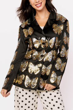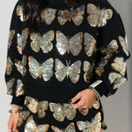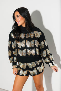 Queen Of Sparkles Black & Gold Sequin Butterfly Mockneck Sweatshirt